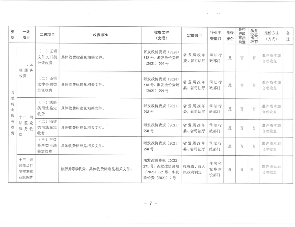行政事业性收费清单