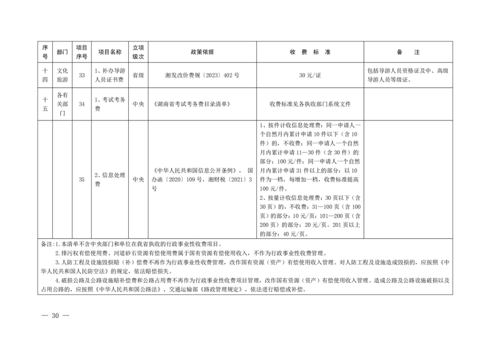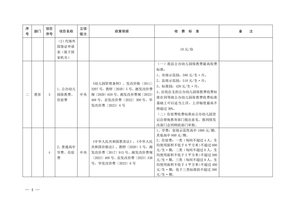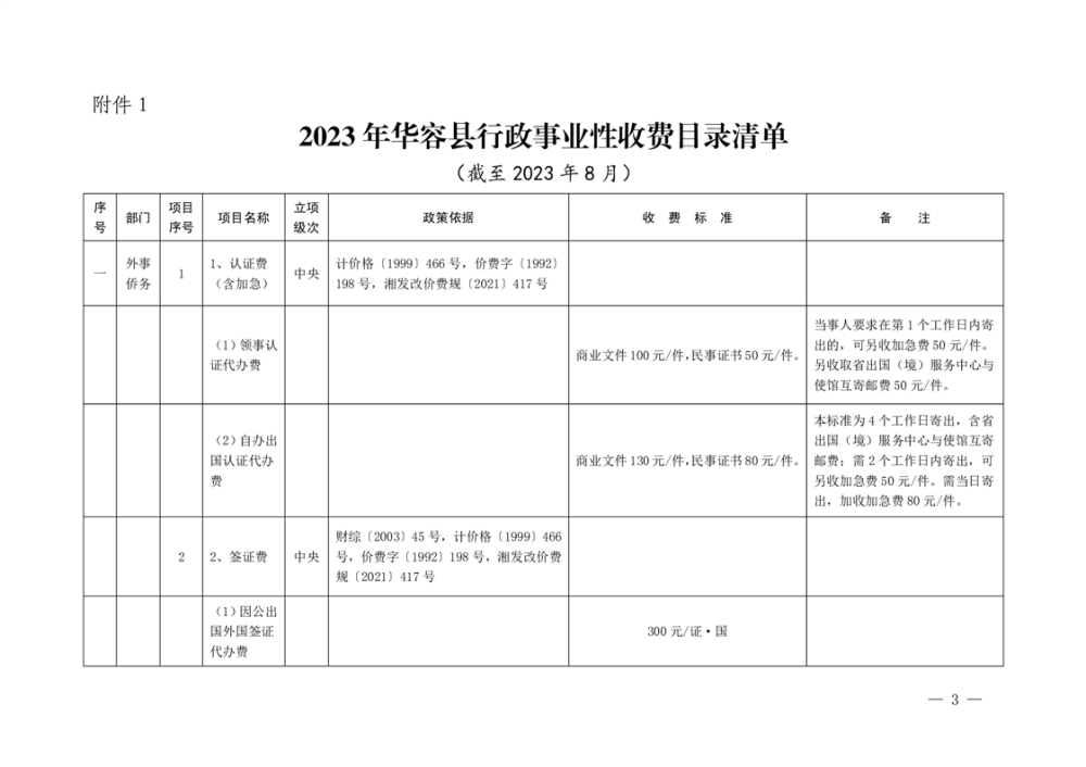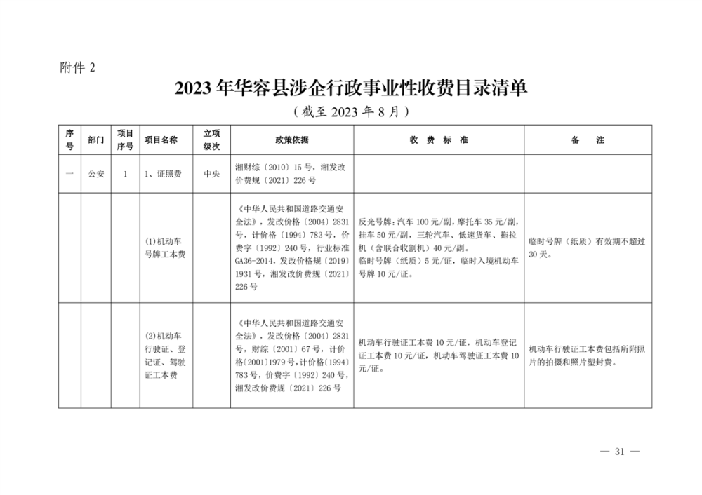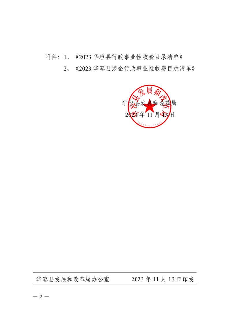 2023年华容县行政事业性收费和涉企行政事业性收费目录清单