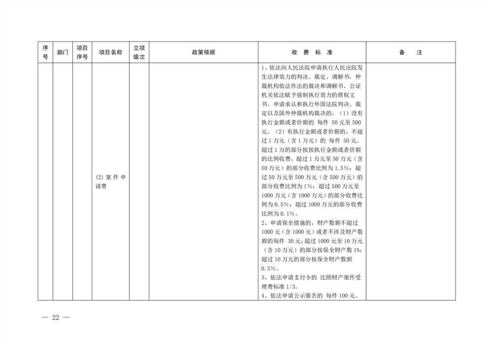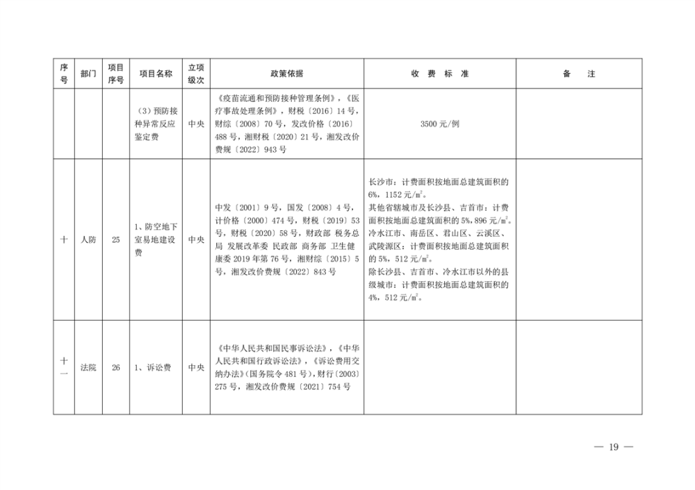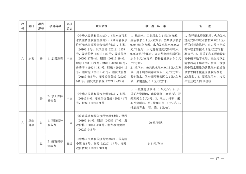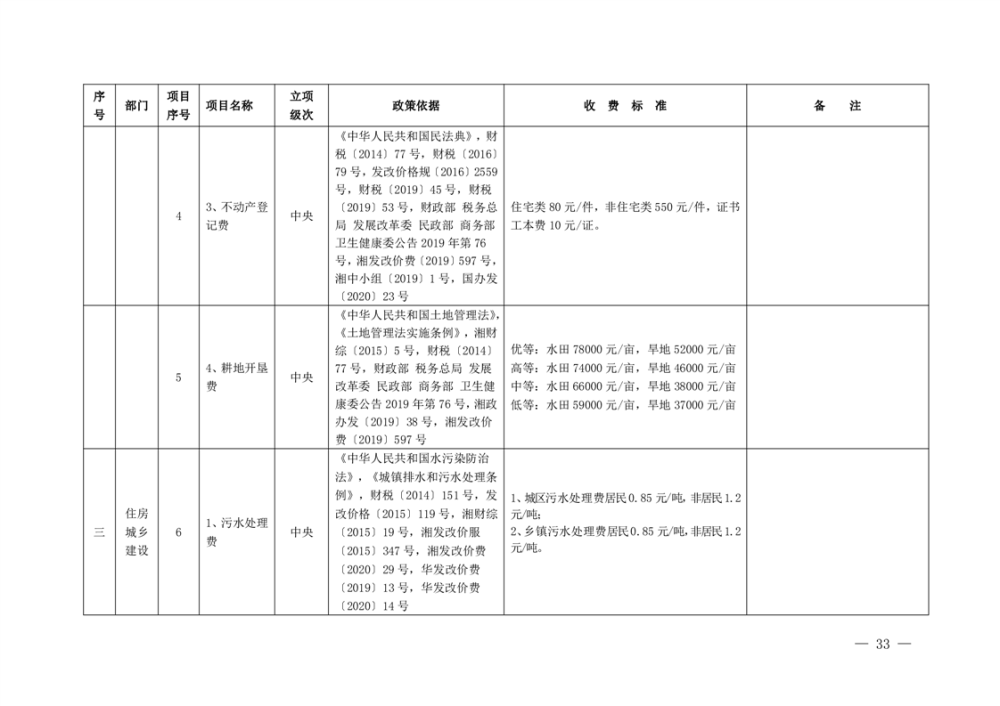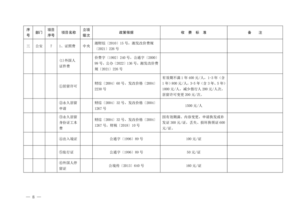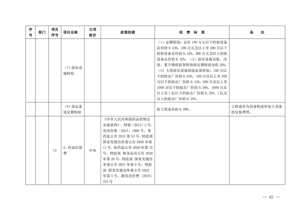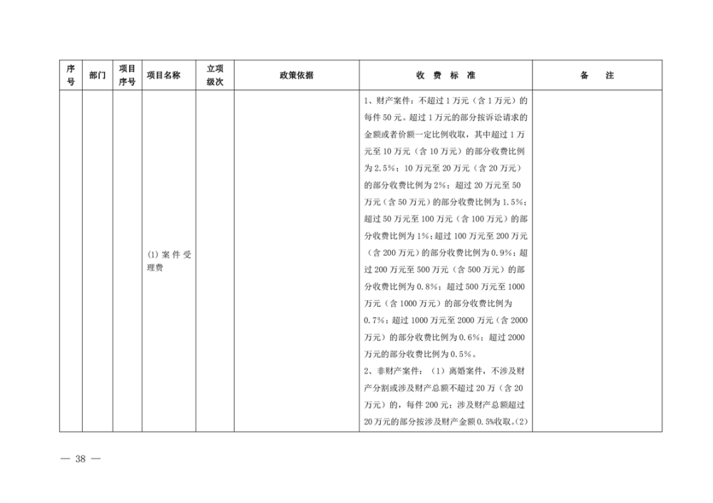 行政事业性收费清单