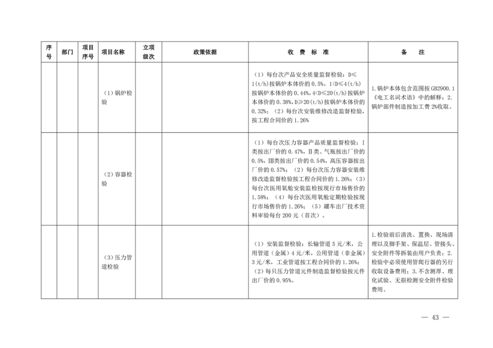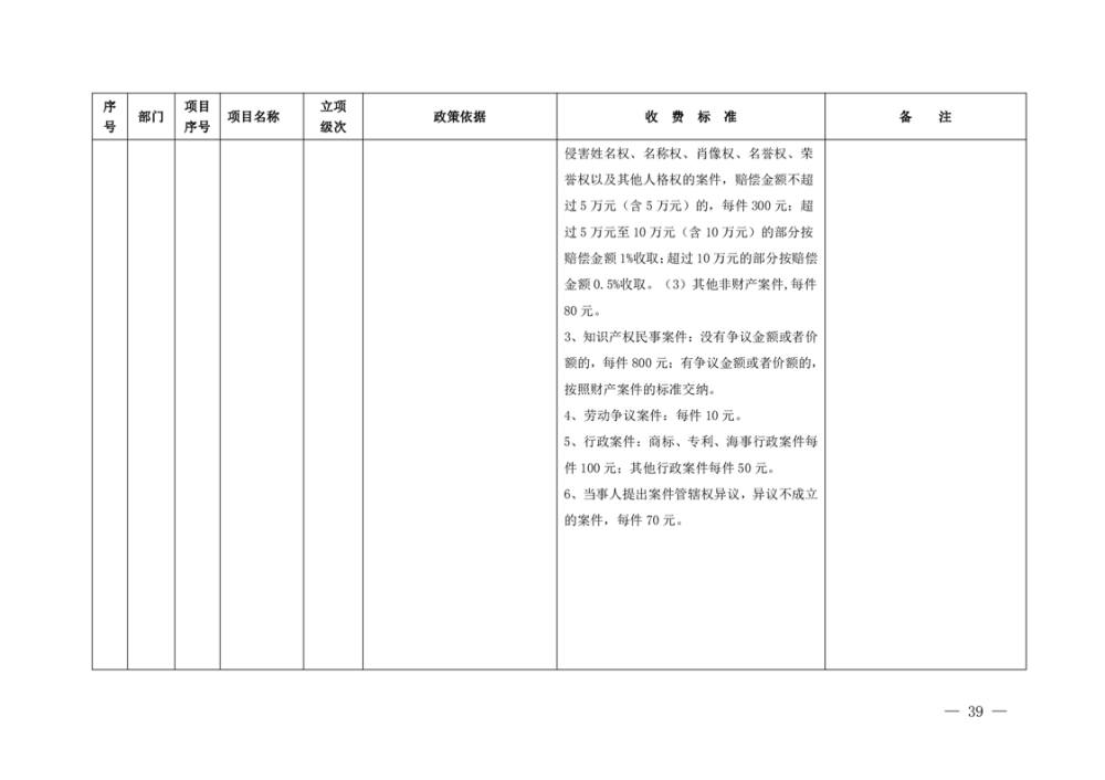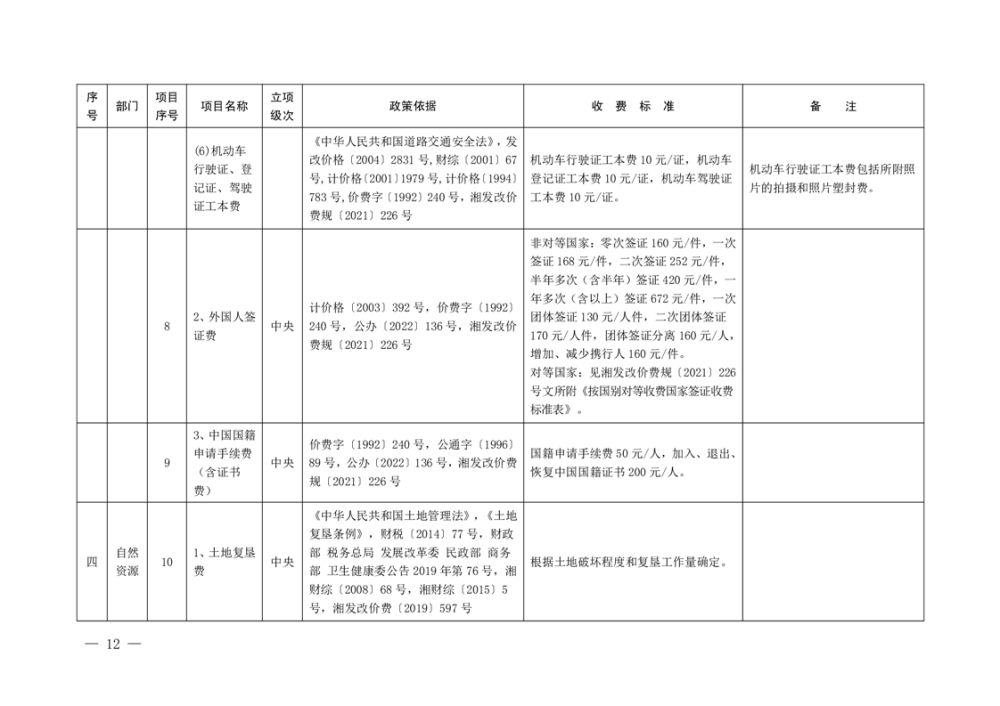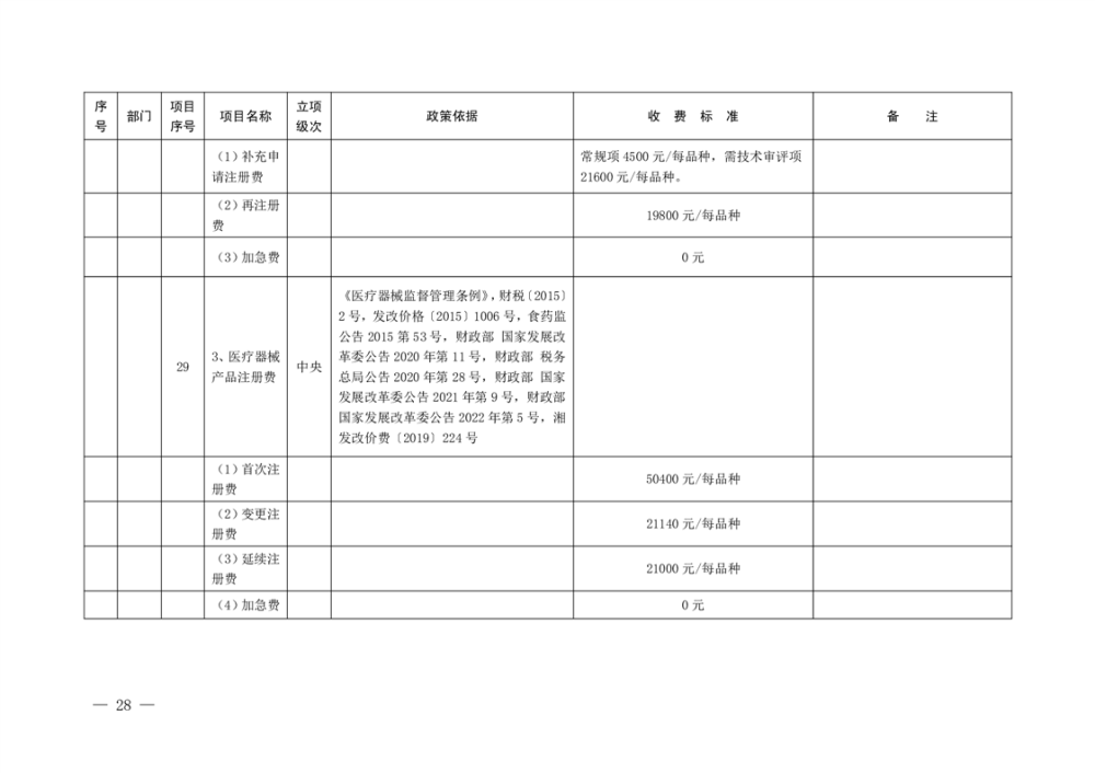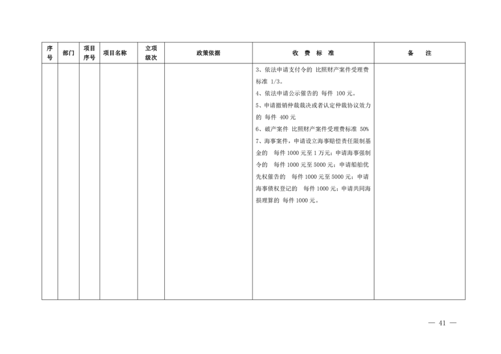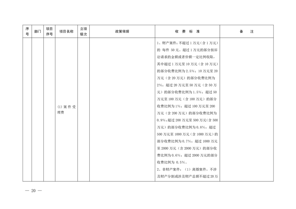 行政事业性收费清单