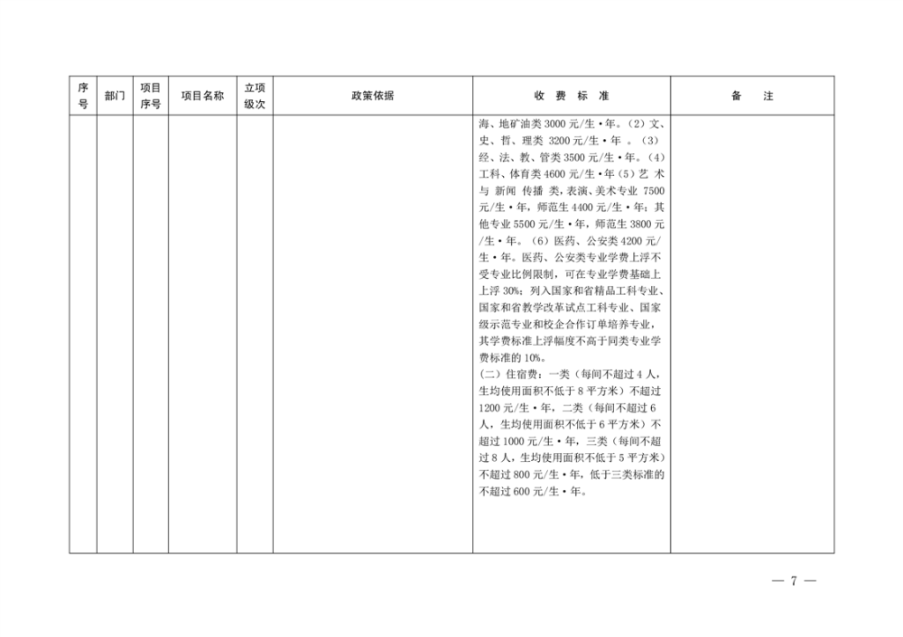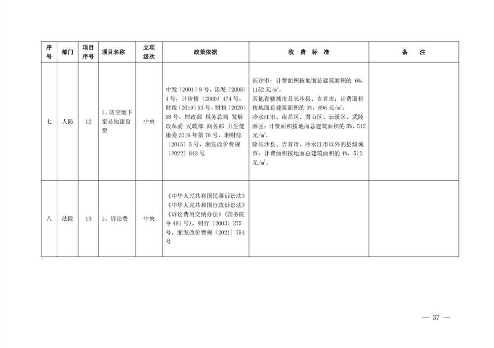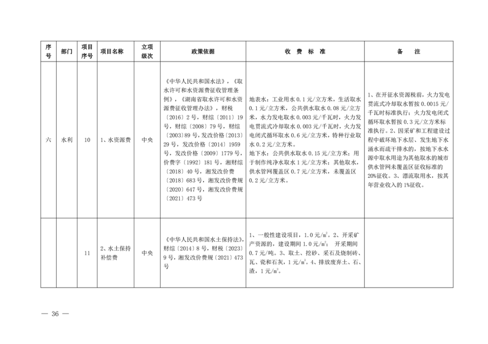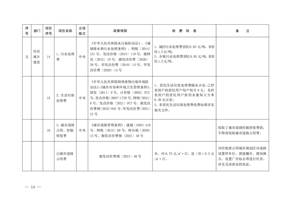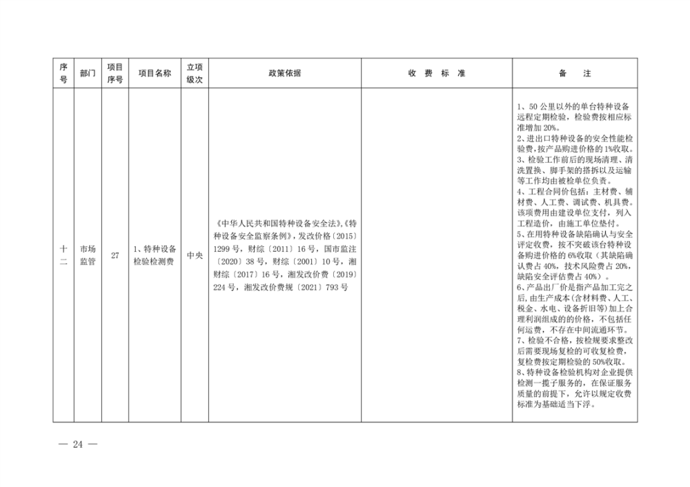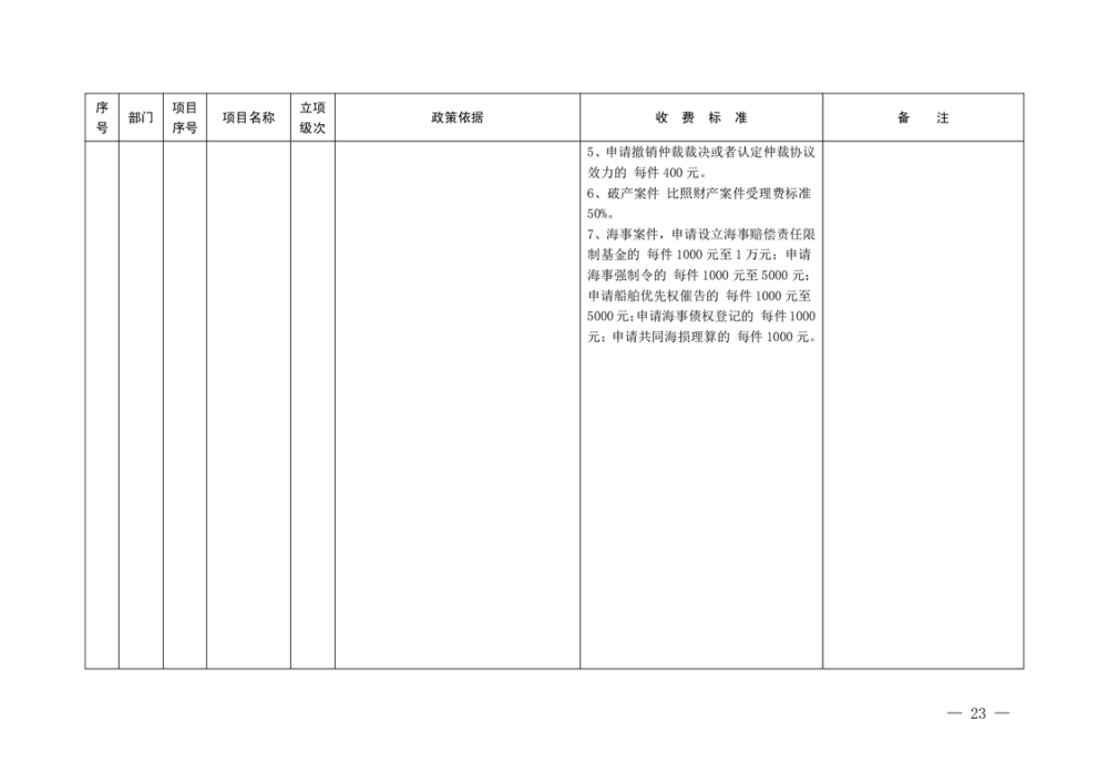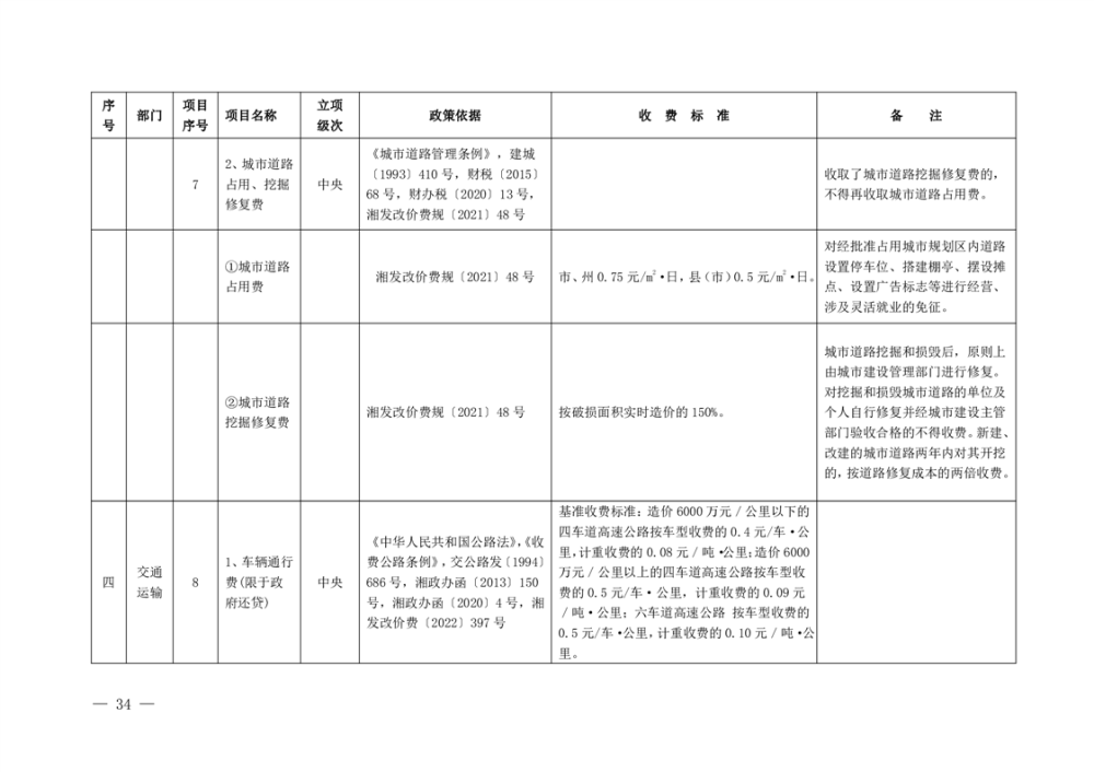 行政事业性收费清单