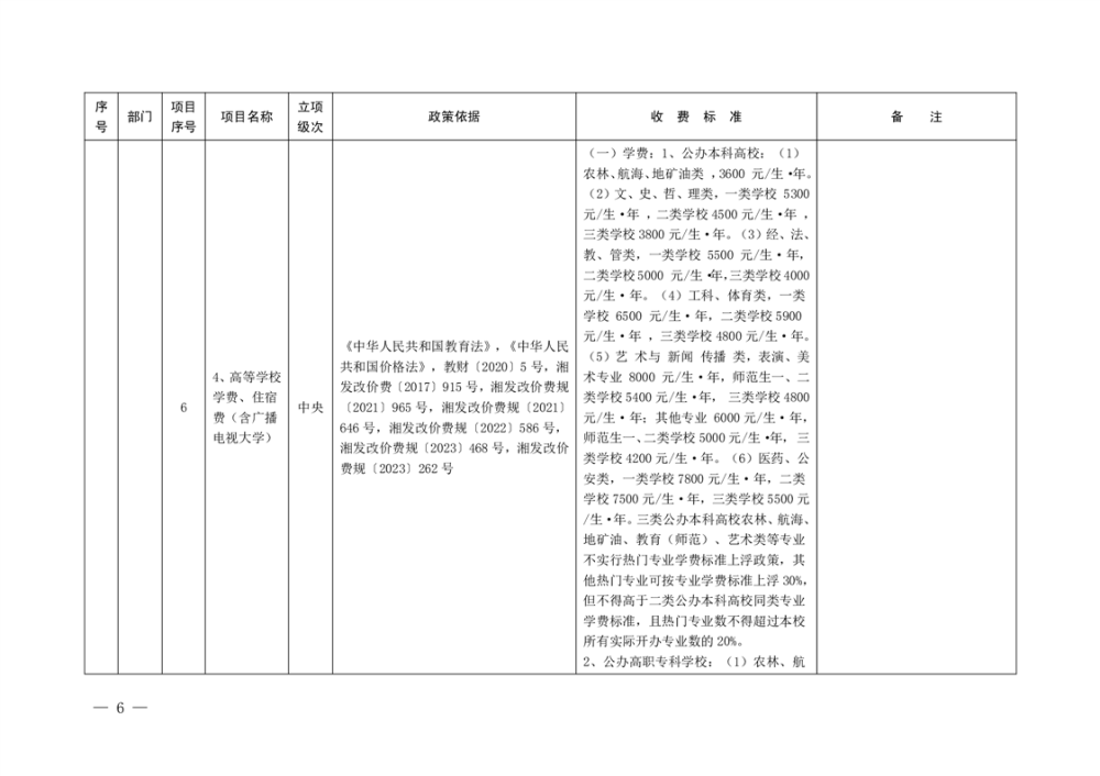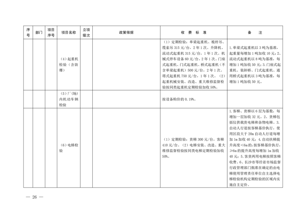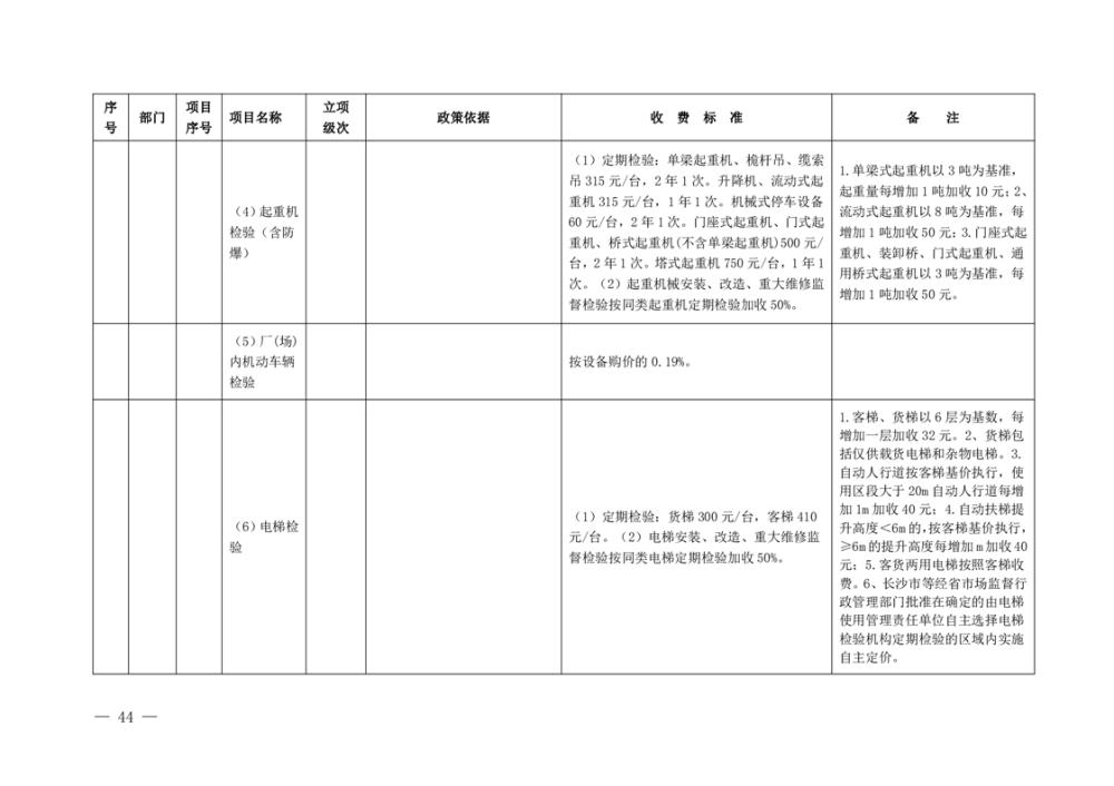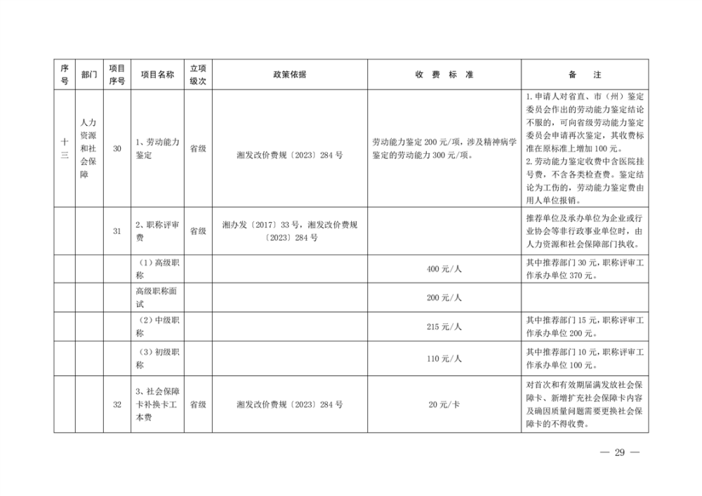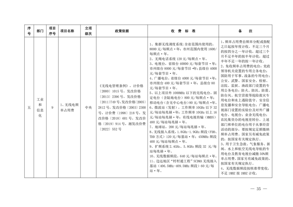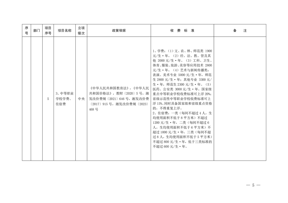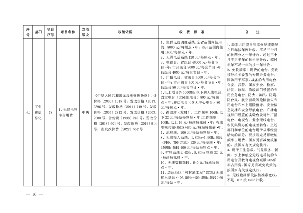 行政事业性收费清单