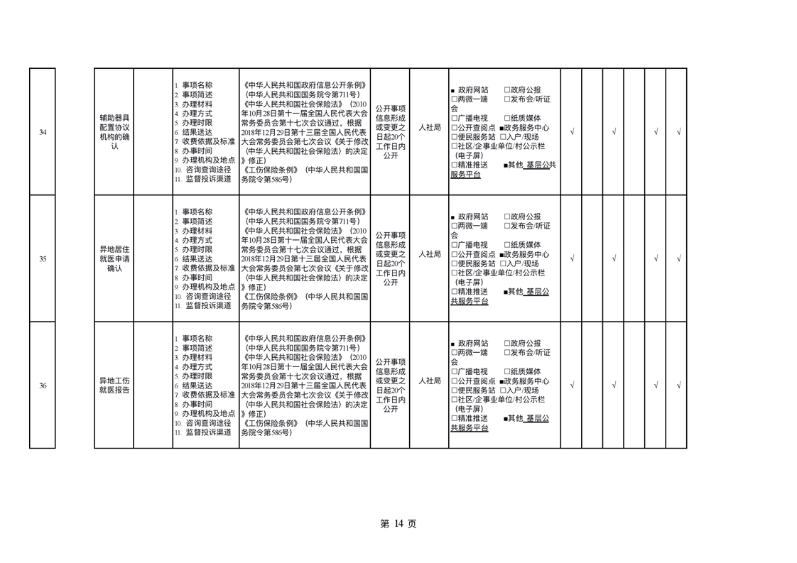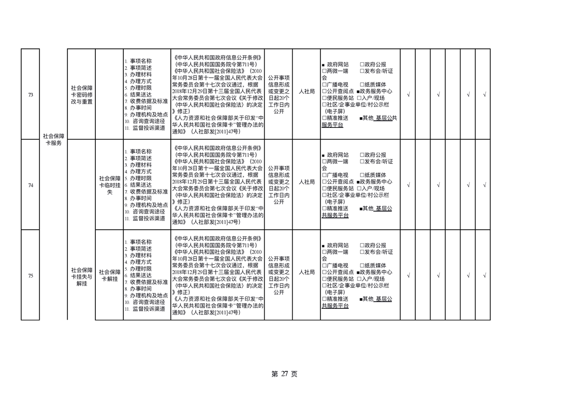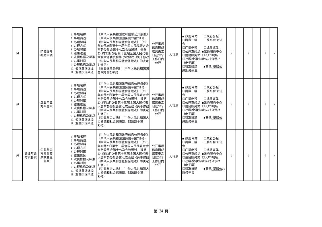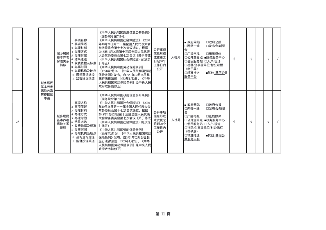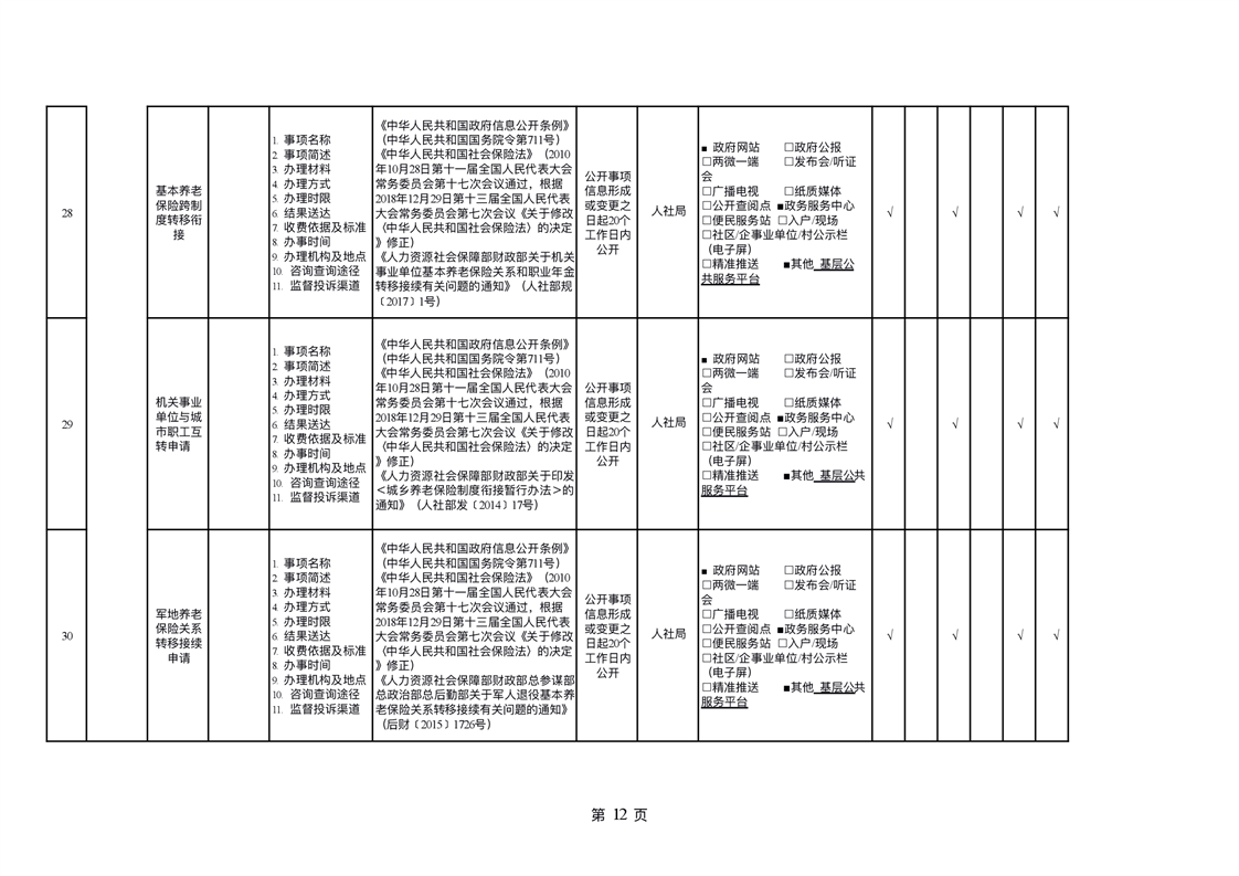 社会保险领域基层政务公开标准目录