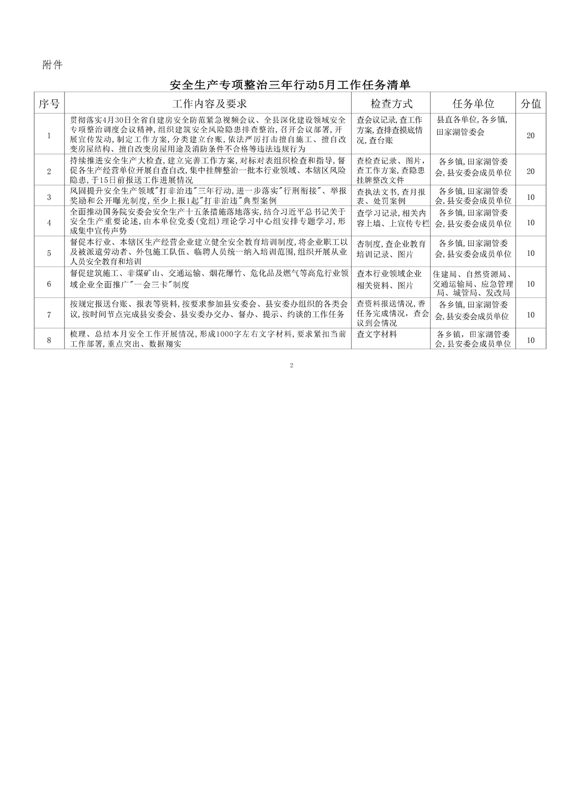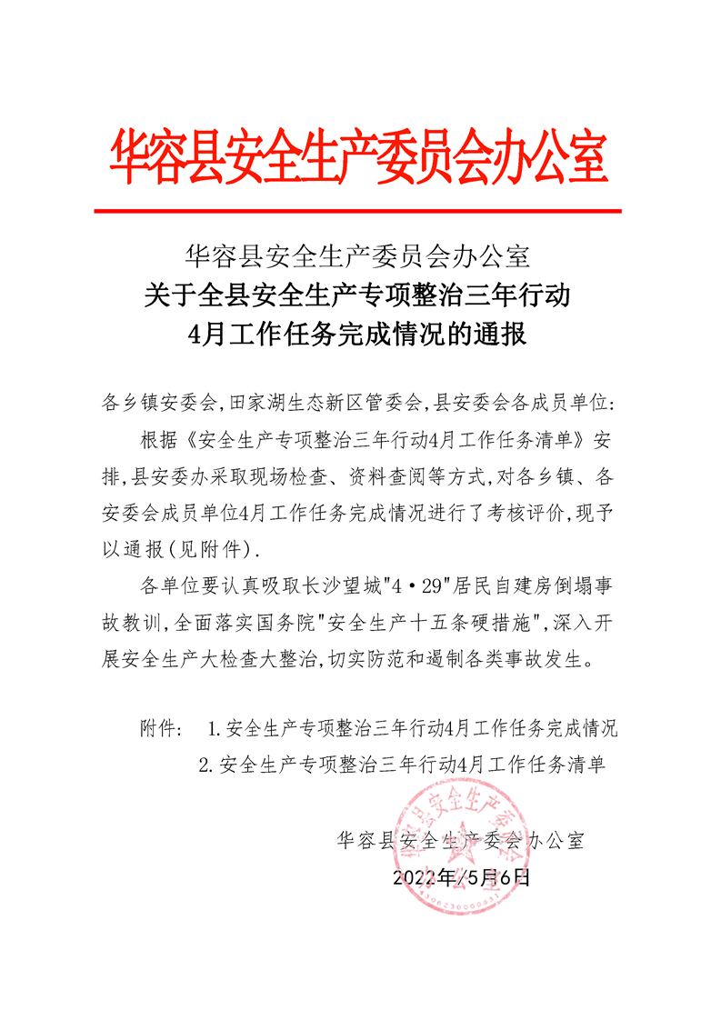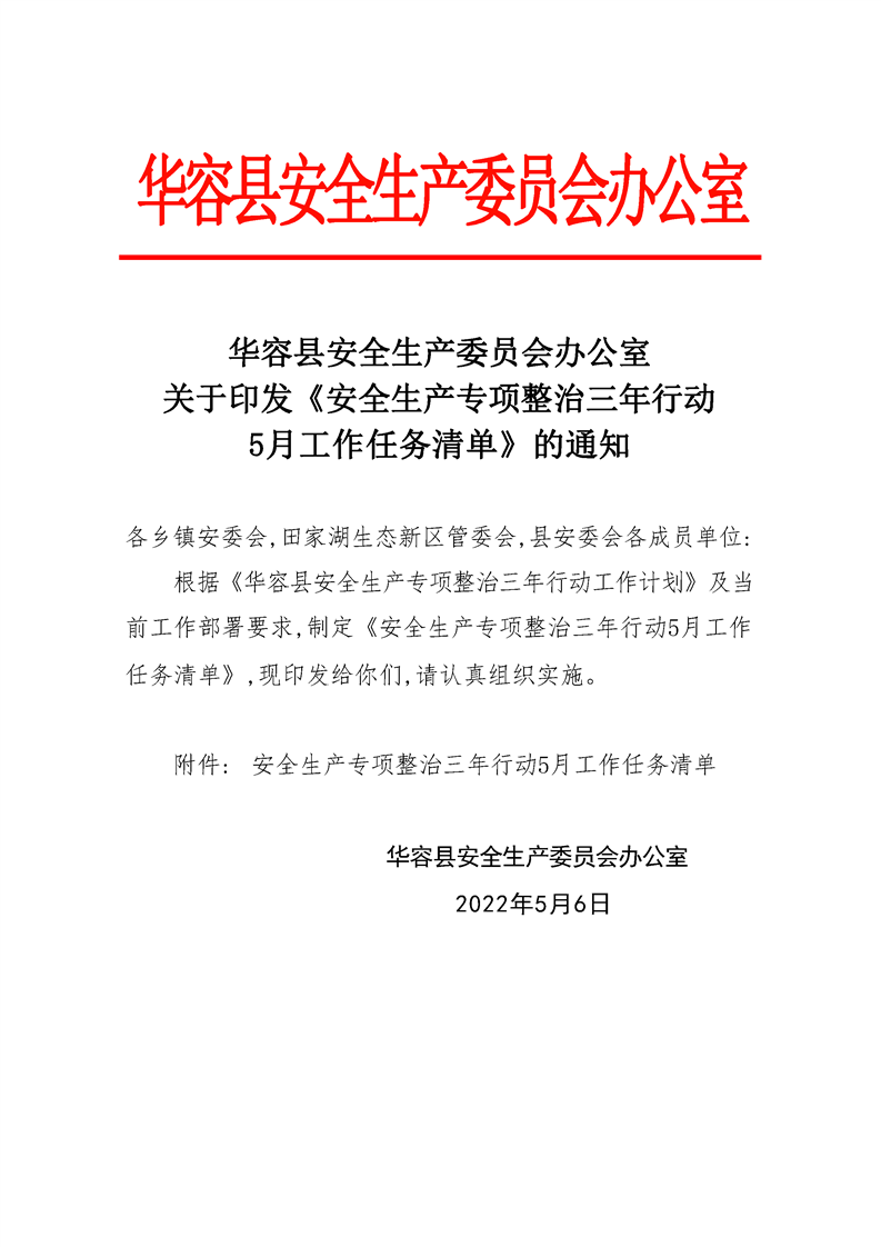 华容县安全生产委员会办公室 关于印发《安全生产专项整治三年行动 5月工作任务清单》的通知