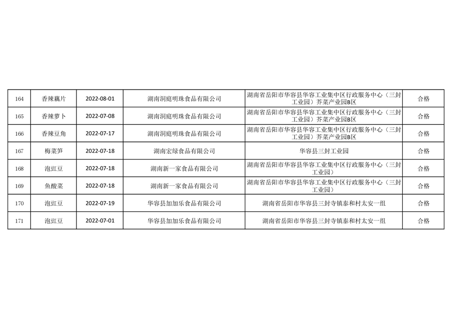 2022年华容县9月份241批食品抽检结果公示(三)2022-10-19