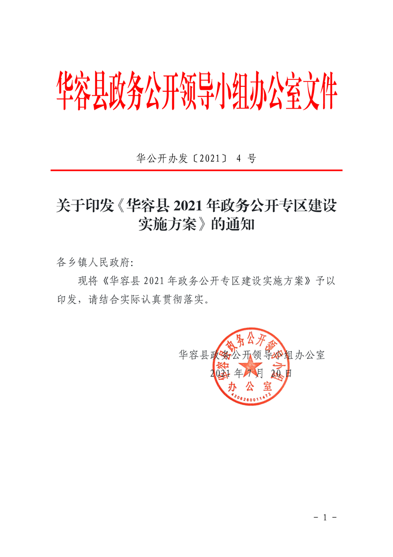 关于印发《华容县2021年政务公开专区建设实施方案》的通知