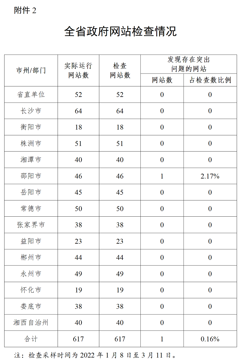 湖南省政务管理服务局关于2022年第一季度全省政府网站与政务新媒体检查情况的通报