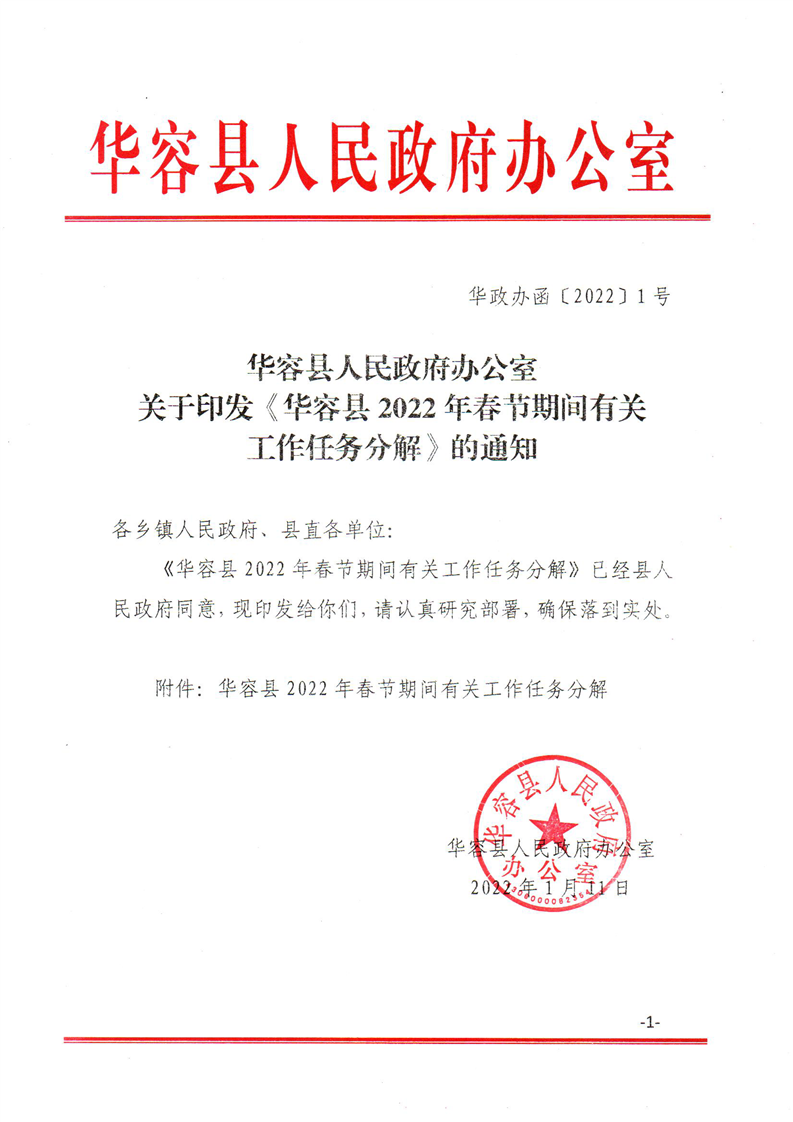华容县人民政府办公室关于印发《华容县2022年春节期间有关工作任务分解》的通知.pdf