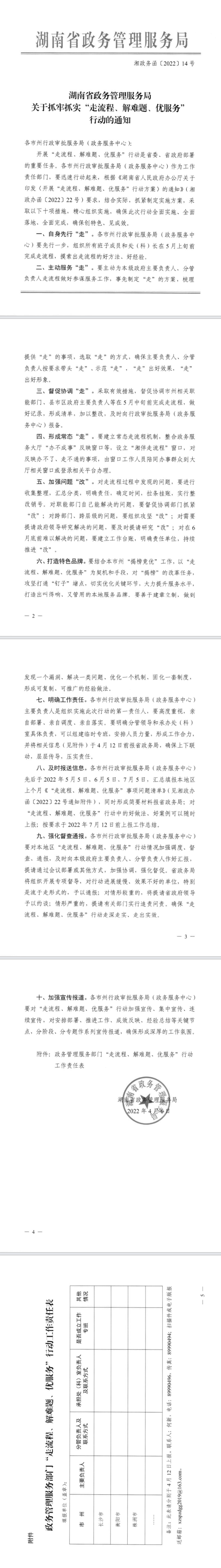 湖南省政务管理服务局关于抓牢抓实“走流程、解难题、优服务”行动的通知