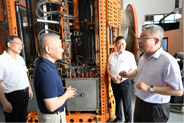 ▲ 7月20日,沈晓明来到湖南科技大学,详细了解海底钻机研发历程,与领衔研制“海牛II号”海底大孔深保压取芯钻机系统的万步炎教授亲切交流。(图片来源:湖南省人民政府门户网站)