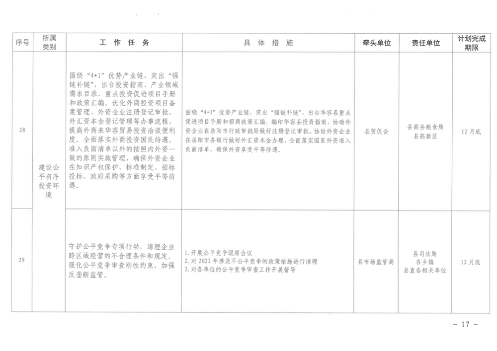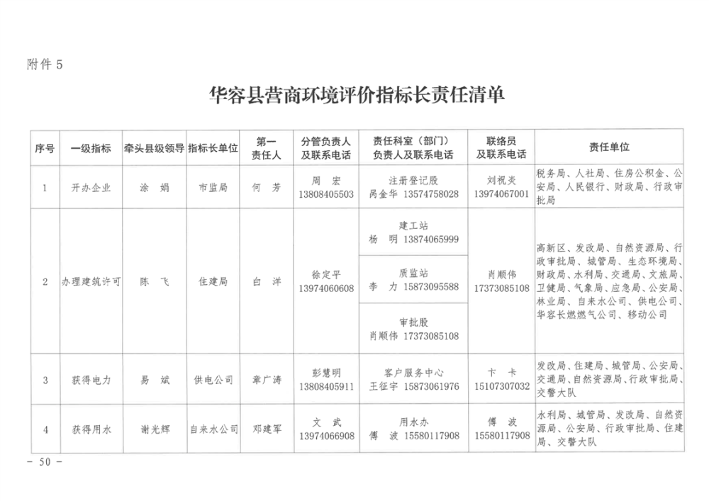 华容县优化营商环境工作领导小组关于印发《2023 年华容县打好优化发展环境持久仗工作任务分解表》《华容县营商环境改革创新案例和特色亮点工作》《华容县营商环境评价指标任务日标》、《华容县营商环境负面清单》《华容县营商环境指标长责任清单》的通知