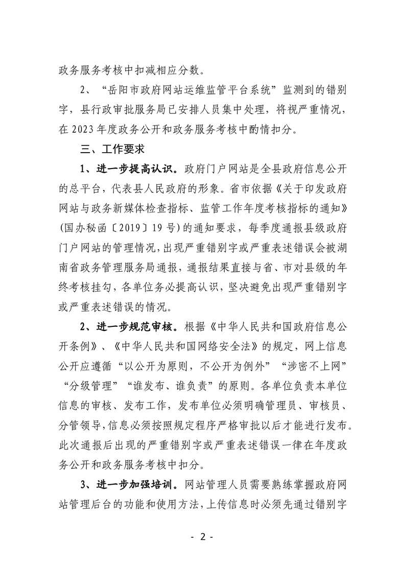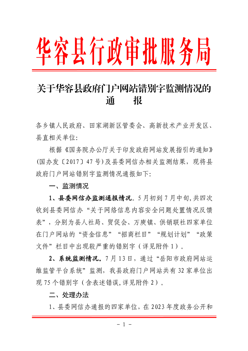 【审查监管】关于华容县政府门户网站错别字监测情况的通报