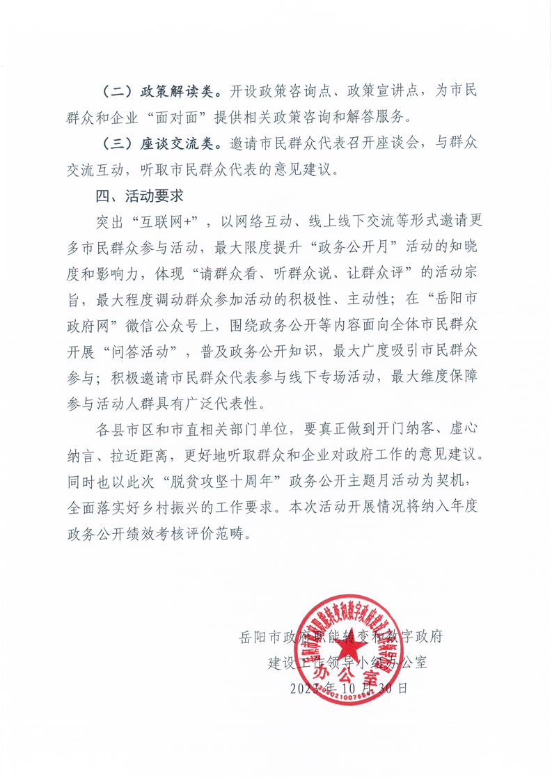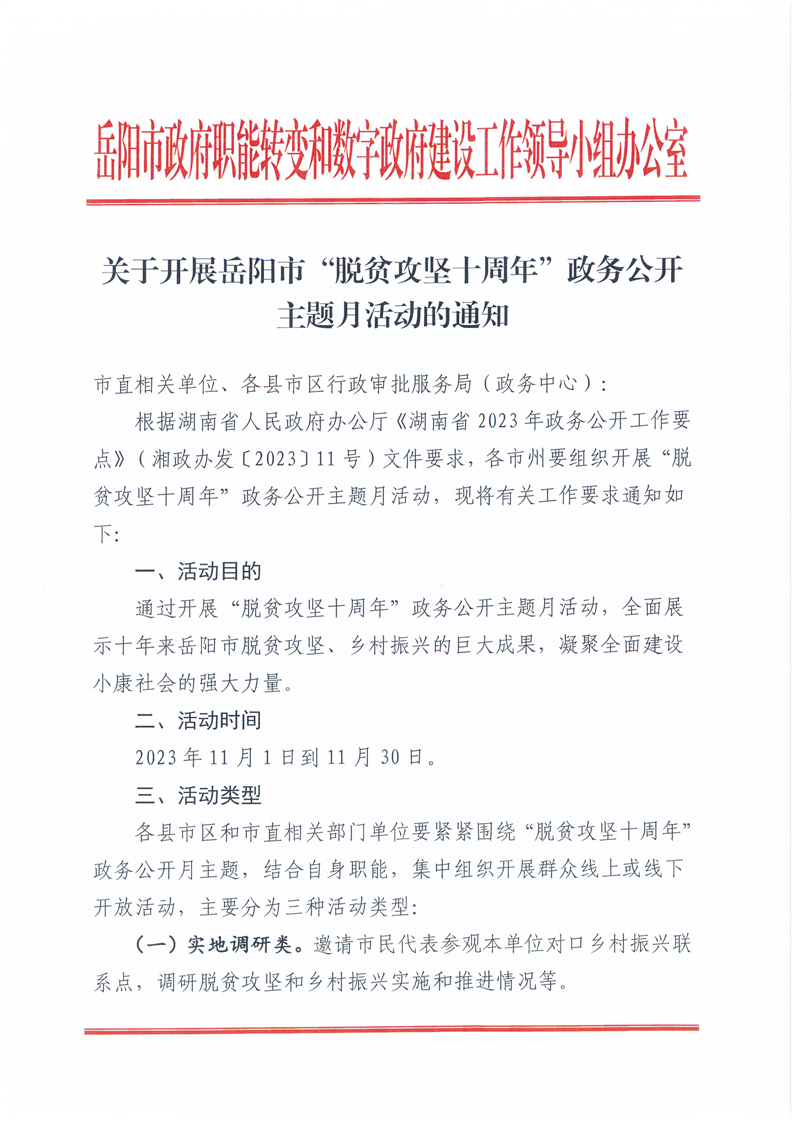 关于开展岳阳市“脱贫攻坚十周年”政务公开主题月活动的通知
