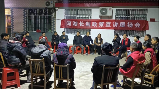 在紫南村,治河渡镇护水总支潘华渠支部组织附近群众参加“河湖长制政策宣讲屋场会”,现场交流听取群众意见建议,引导群众参与河长制,凝聚治理河湖的力量,以此打造让群众满意的生态河湖、健康河湖、幸福河湖。