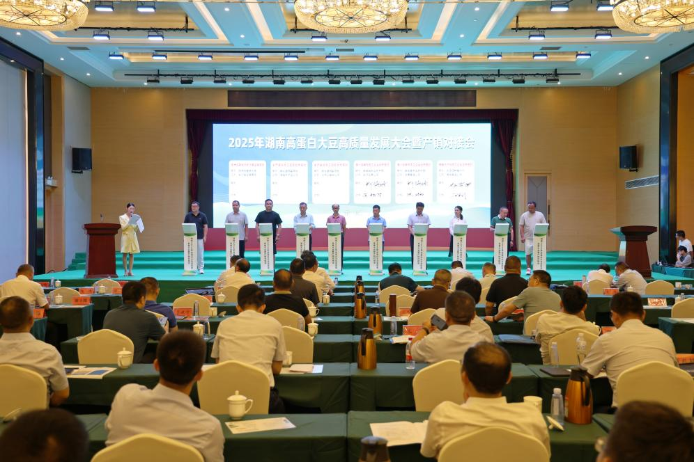 陈阁辉表示,岳阳始终把大豆种植作为稳粮保供重要举措,全市大豆全产业链总产值159.48亿元、占全省31%,规模以上加工企业123家、居全省首位,已成为现代农业发展和乡村振兴的重要引擎。下一步,岳阳将以此次大会为契机,全力推进大豆产业集群项目建设,重点支持华容复合种植等先进模式,扩大高蛋白大豆生产面积,引导企业加大技术改造,持续提升现代化生产水平和产品附加值,深化品牌打造,推动高蛋白大豆产业向更高质量发展。华容县要以此次大会为新起点,夯实农业根基、释放基础优势,深耕技术创新与模式探索,加快大豆产业规模化、标准化、品牌化进程,力争成为全省标杆。