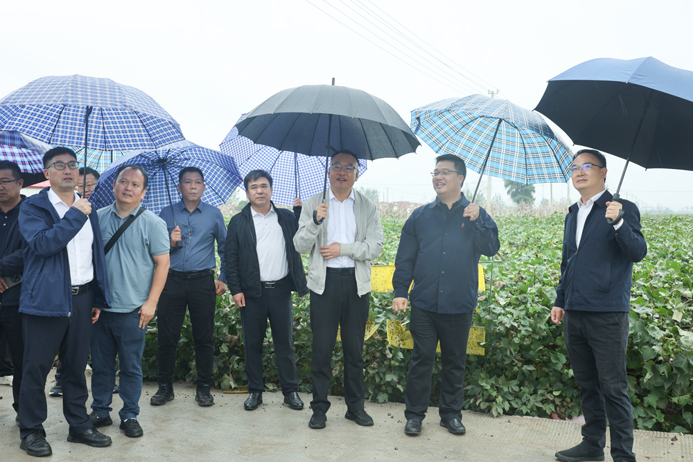 在团洲乡机采棉示范片区,调研组实地查看了棉花长势,并认真听取了我县关于棉花种植模式及关键技术措施应用的情况汇报。今年以来,华容县与省农科院持续深化合作,在团洲乡共同推进机采棉示范点建设,集中示范种植湘FZ301、湘棉39、湘棉36、湘HX50等优良品种,全面推广卫星导航精准播种、精量点播等现代化种植技术,积极探索适合本地区的高产高效植棉路径。