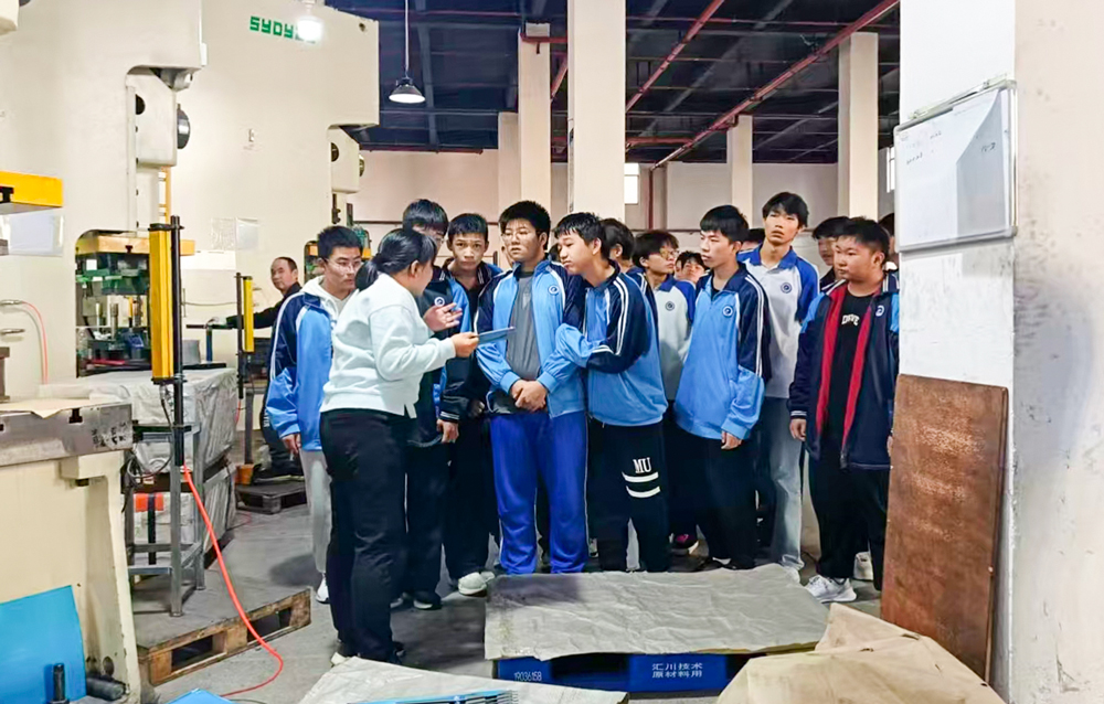 围绕县域产业发展需求,中心首批入驻7个专业班级共295名学生,精准开设物联网、机电、食品安全等特色专业。为让学生“在产线触摸专业脉搏”,学校深度开展校企合作:与占据国内摆臂冲压机器人70%市场份额的湖南沁峰机器人有限公司签订现代学徒制协议,遴选10名学生“拜师学艺”,由企业导师一对一传授CNC数控车床操作技术;组织电子电器、物联网专业学生赴岳阳璟祥电子开展见习,近距离感受产品研发、生产、检测全流程。这种“课堂+车间”的培养模式,让学生专业技能与企业需求无缝对接,为县域产业升级储备了大量技能人才。