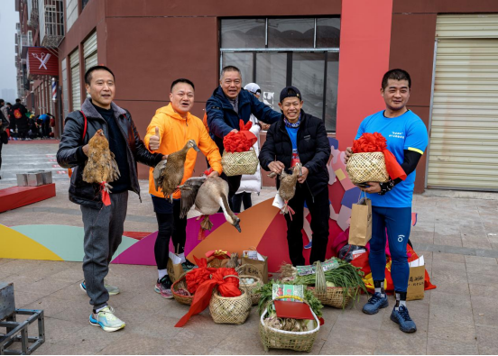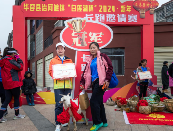 本次“白莲湖杯”长跑邀请赛既有专业性,同时也彰显了当地的“乡土气”,所有坚持完赛的选手均可以获得一份包括华容特产团子、芥菜、腌萝卜等在内的新年大礼包,各组别前八名选手的奖品更是丰富多彩,有活蹦乱跳的鸡鸭鹅、有满满一箩筐的土猪肉、有当天采摘的新鲜蔬菜,冠军选手更是把一头山羊抱回家,寓意“喜气洋洋”……
