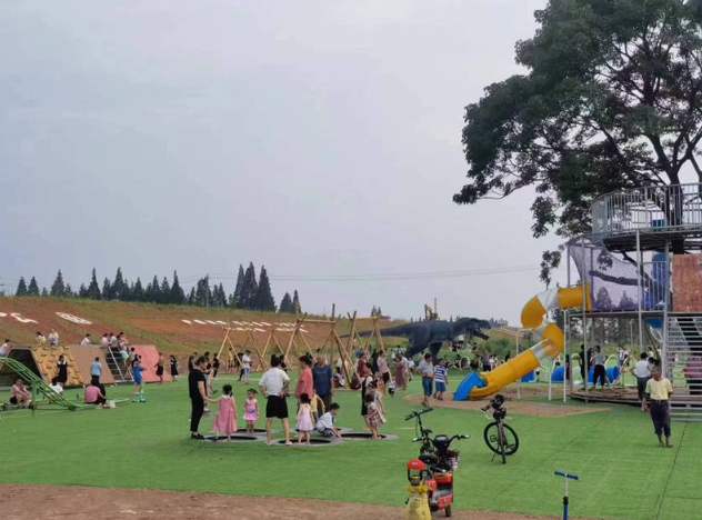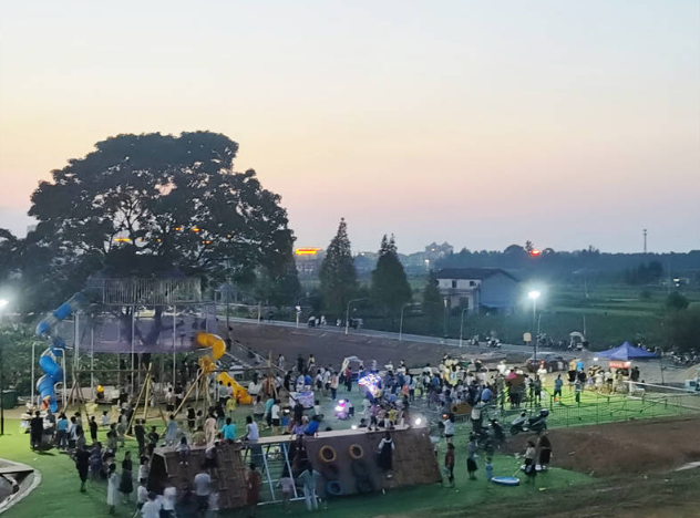 白莲湖农旅休闲公园占地面积约50亩,位于治河渡镇紫南村沱江新城小区旁,公园免费开放,公厕、小卖部等便民设施均配套到位。在公园建设过程中,镇党委政府采取自主设计、专人协调、争项争资等方式,严控人工和材料成本,节省一切不必要的开支,把每一分钱都用在刀刃上。目前,公园一期建设已打造稻田画、树屋、滑滑梯、蹦床、坑爹过山车、秋千、攀爬墙、地洞、大型仿真恐龙、恐龙蛋、充气大黄鸭、充气游泳池、奥特曼模型、溪流、沙坑、摸鱼塘、荷花塘、观荷栈道、板板桥、风车路、烧烤等多种休闲游乐项目,并成功举办第一期亲子插秧摸鱼活动。现在在此散步游玩已成了县城以及周边居民的一种常态和休闲模式,2个多月已有5万多人次来游玩,同时带动了公园夜市消费,助推了治河渡镇“地摊经济”的发展。火爆热闹的场面吸引了许多投资者的目光,在镇党委政府的把关下,引进了一家有资质的公司进行专业化经营,流转土地130多亩,增设夏令营等活动,打造劳动教育基地,今年就已为村集体增收12万多元。