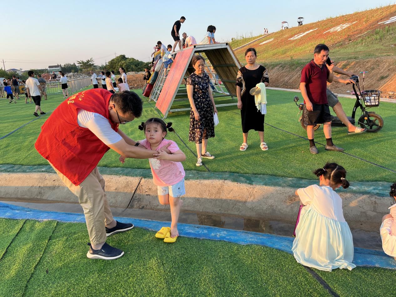 治河渡镇因地制宜,投入财力物力在紫南村打造一个占地百余亩的白莲湖农旅休闲公园,这里有最受孩子们欢迎的过山车、梅花桩、树屋、电动恐龙等安全时尚的游乐设施,有插秧、抓鱼、摸龙虾、采莲子等丰富多彩的亲子活动,吸引了全镇甚至华容县的孩子及家长前来游玩,有效吸引了高温下喜欢户外游泳的人群来此打卡。治河渡镇组织青年党员、新时代文明实践志愿者轮流驻守公园负责现场引导、安全防护及清洁卫生工作,既丰富了学生们的暑假生活,又切实保障了他们的安全。