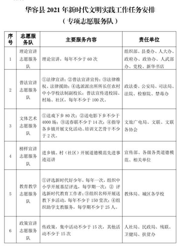 3.华容县2021年新时代文明实践工作任务安排(专项志愿服务队)