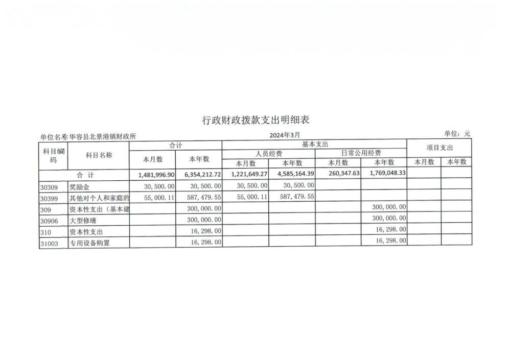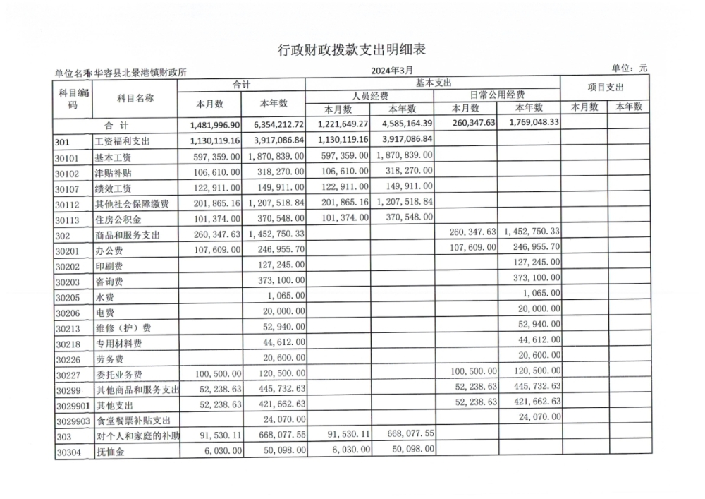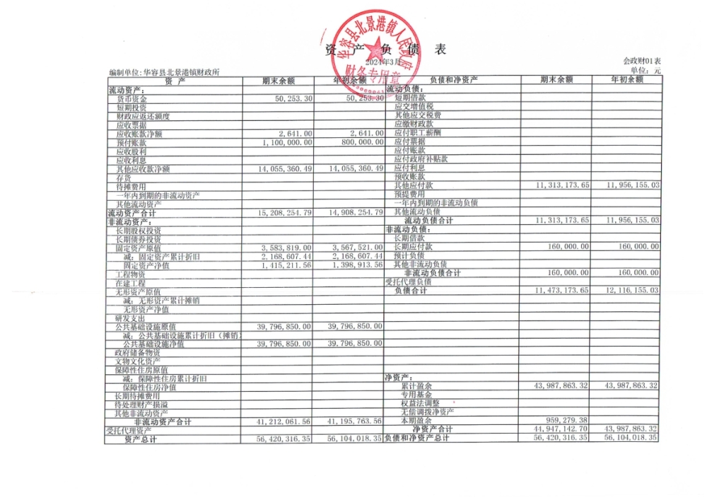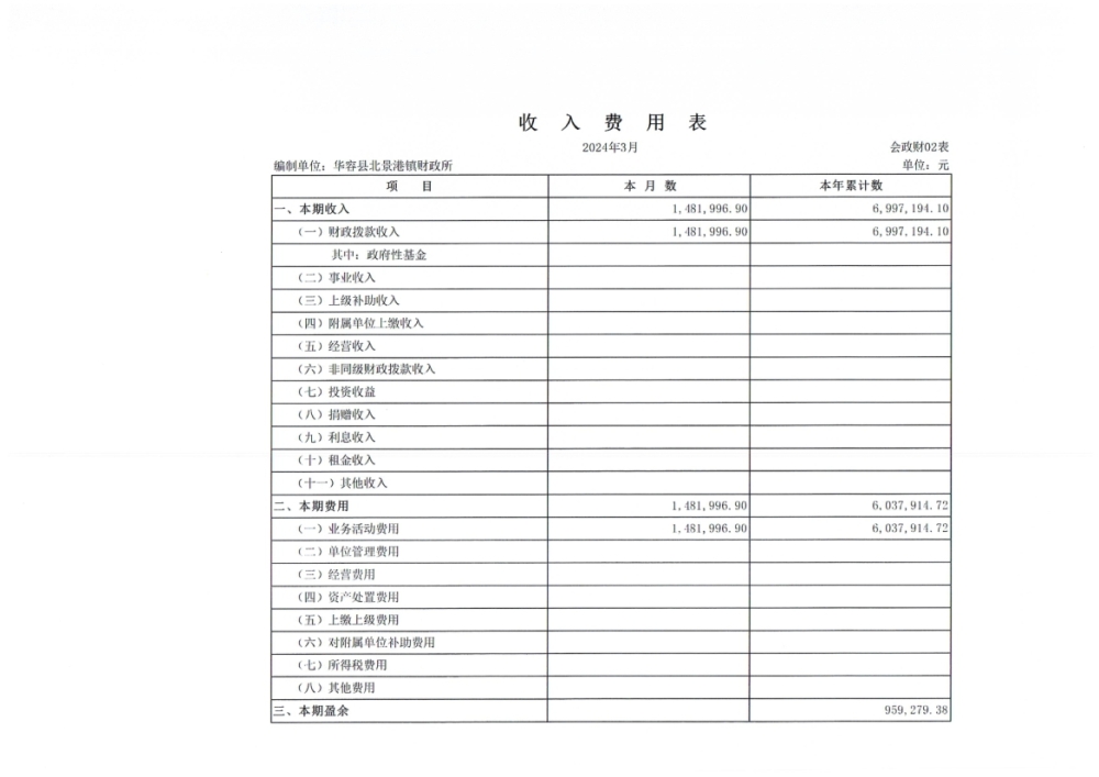 北景港镇2024年第一季度会计报表