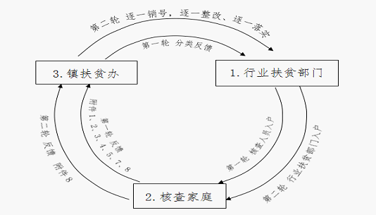 第二轮:4月18日-6月10日,补短板、抓整改。各行业扶贫部门针对镇扶贫办分类汇总情况再一次入户上门深挖排查,整理行业部门附件8反馈镇扶贫办,形成以各相关扶贫行业部门为主导,镇扶贫办配合的机制,对涉及问题进行逐一销号、逐一整改、逐一落实、逐一验收。