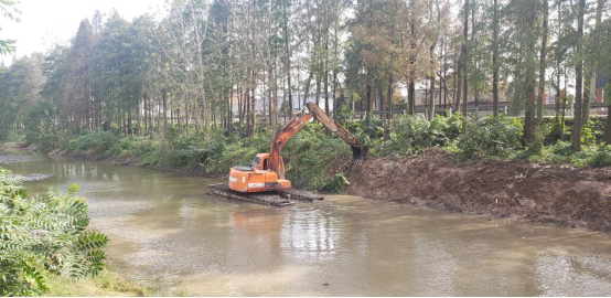新河干渠全长12.8公里,东起人民南路,随着S306路西行,贯穿新河乡9个村(社区)。由于多年运行,容易淤积,影响了排涝、灌溉功能;且水葫芦呈疯长之势,堵塞水系流通,会对水源造成污染。今年来,新河乡党委政府对新河干渠样板渠段自主投入20余万元,紧紧围绕清淤增蓄目标,进行清草、清淤、修整边坡。