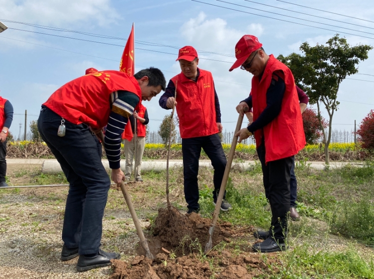 3月12日,华容县新河乡河口村支村“两委”和新时代文明实践党员志愿者开展义务植树活动。