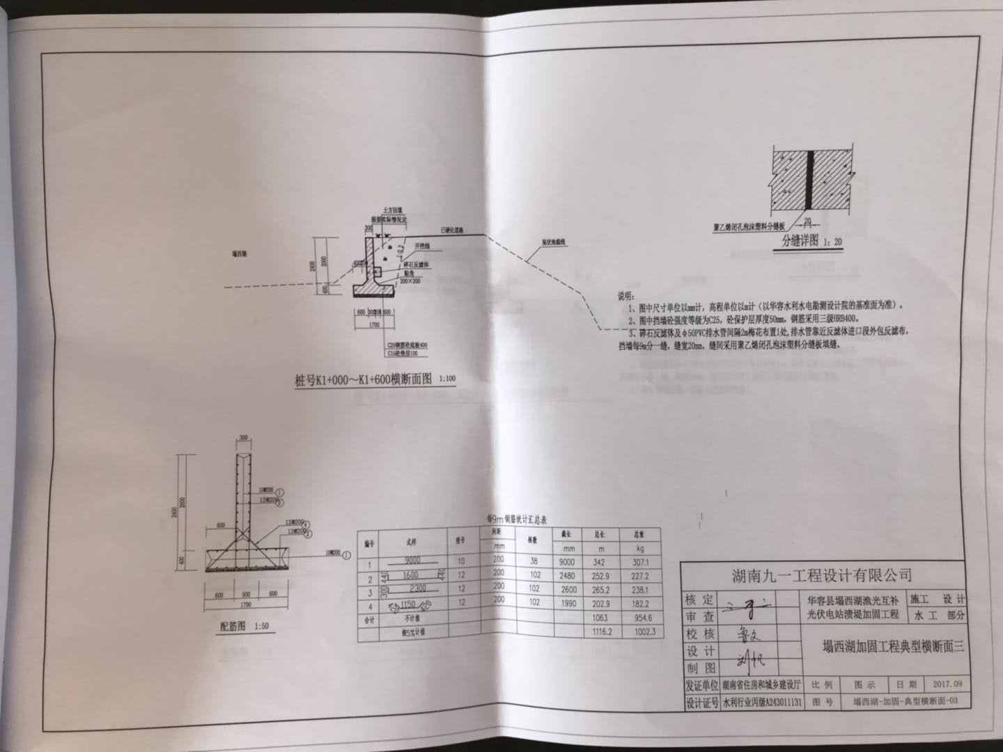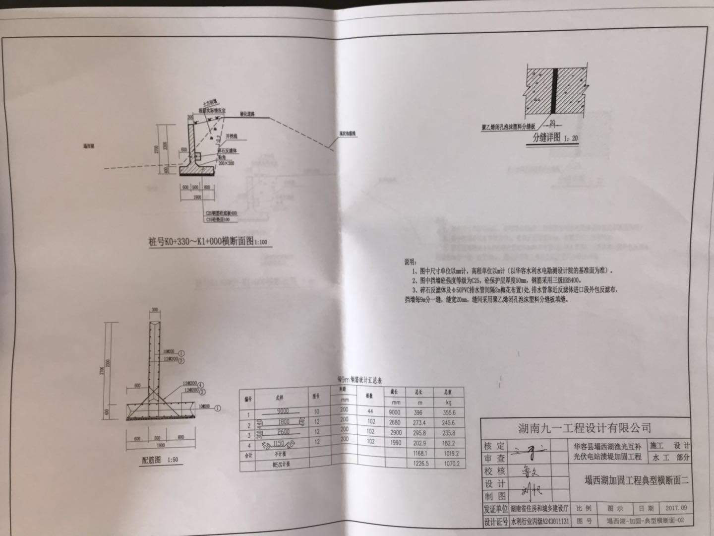 塌西湖渔光互补光伏电站渍堤加固工程设计(挡土墙部分)