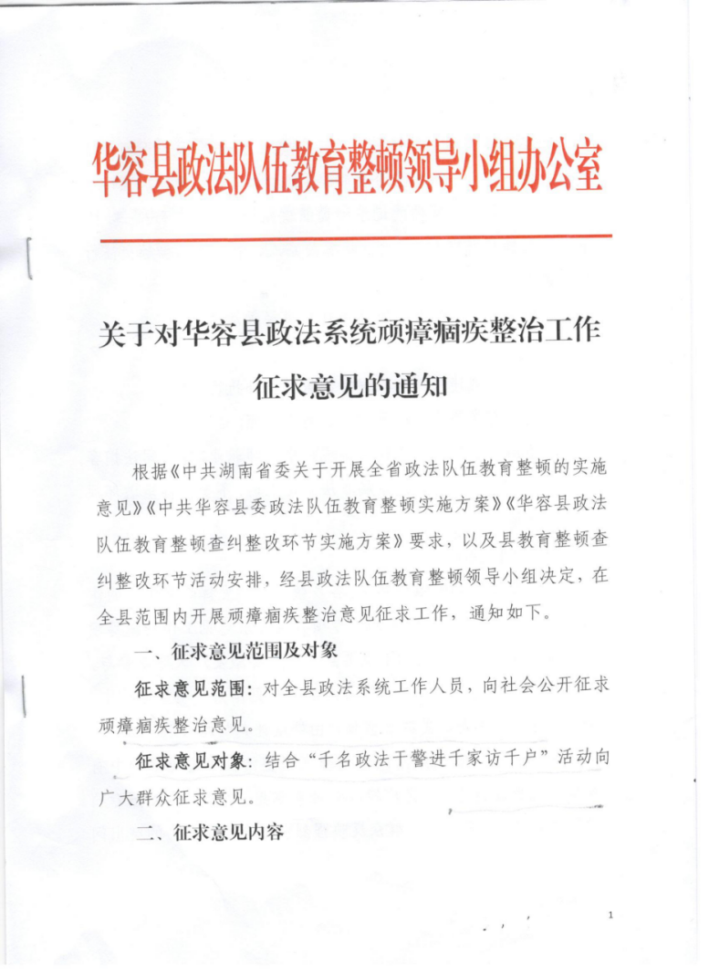附:《关于对华容县政法系统顽瘴痼疾整治工作征求意见的通知》