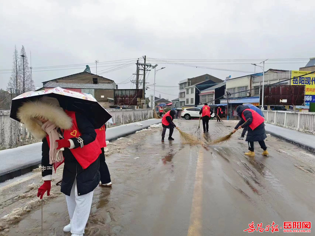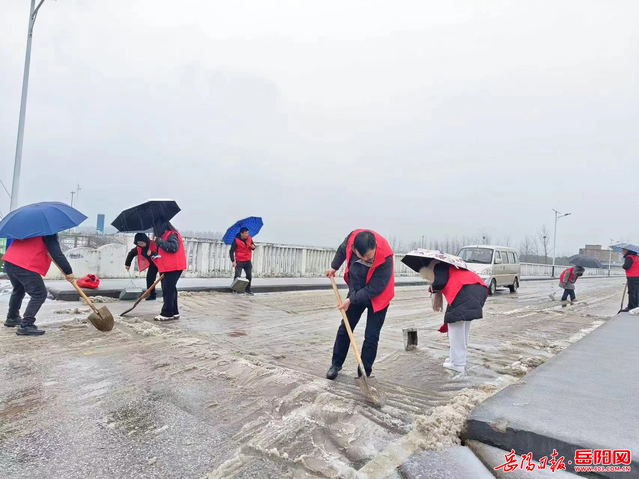 岳阳日报全媒体讯(通讯员 罗文)为积极应对降雪以及冰冻天气带来的影响,全力保障道路通畅和群众出行安全,2月3日,华容县万庾镇充分发挥基层党组织战斗堡垒和党员先锋模范作用,组织动员党员,妇联、团委、应急办、新时代文明实践志愿者上路开展清雪除冰行动。