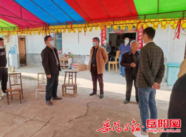 近日,华容县万庾镇五田渡村、双杨村村干部对正在办理红白喜事的村民上门前去做好服务工作,宣讲相关政策,送达《“治陋习、树新风”的倡议书》。