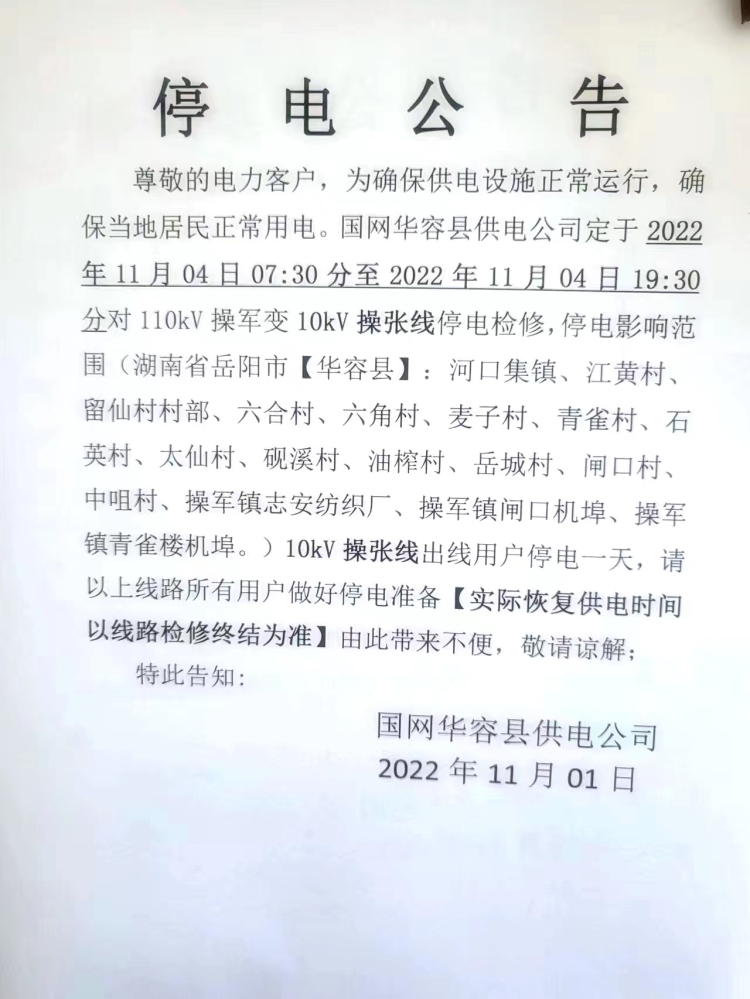 停电公告