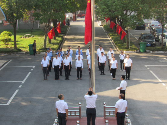10月1日,梅田湖镇在机关大楼前举行升国旗仪式,热烈庆祝中华人民共和国成立70周年。全镇全体党政负责人、站所负责人、全镇机关干部共36人参加仪式。