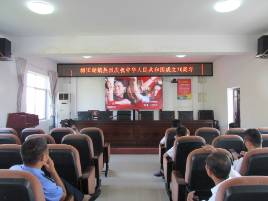 升国旗仪式结束后,梅田湖镇还组织全体人员集中观看中华人民共和国成立70周年庆典仪式,学习习近平总书记重要讲话、观看阅兵式和群众游行,共祝伟大祖国繁荣富强!