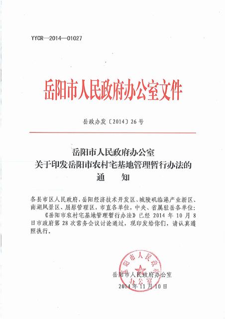 岳阳市人民政府办公室关于印发岳阳市农村宅基地管理暂行办法的通知