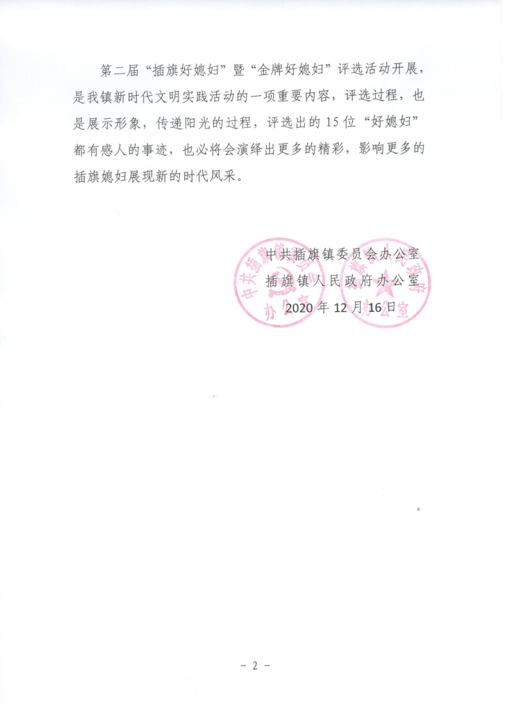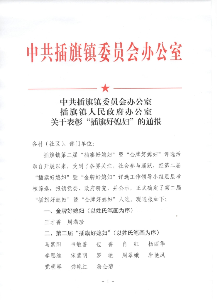 关于表彰“插旗好媳妇”的通报