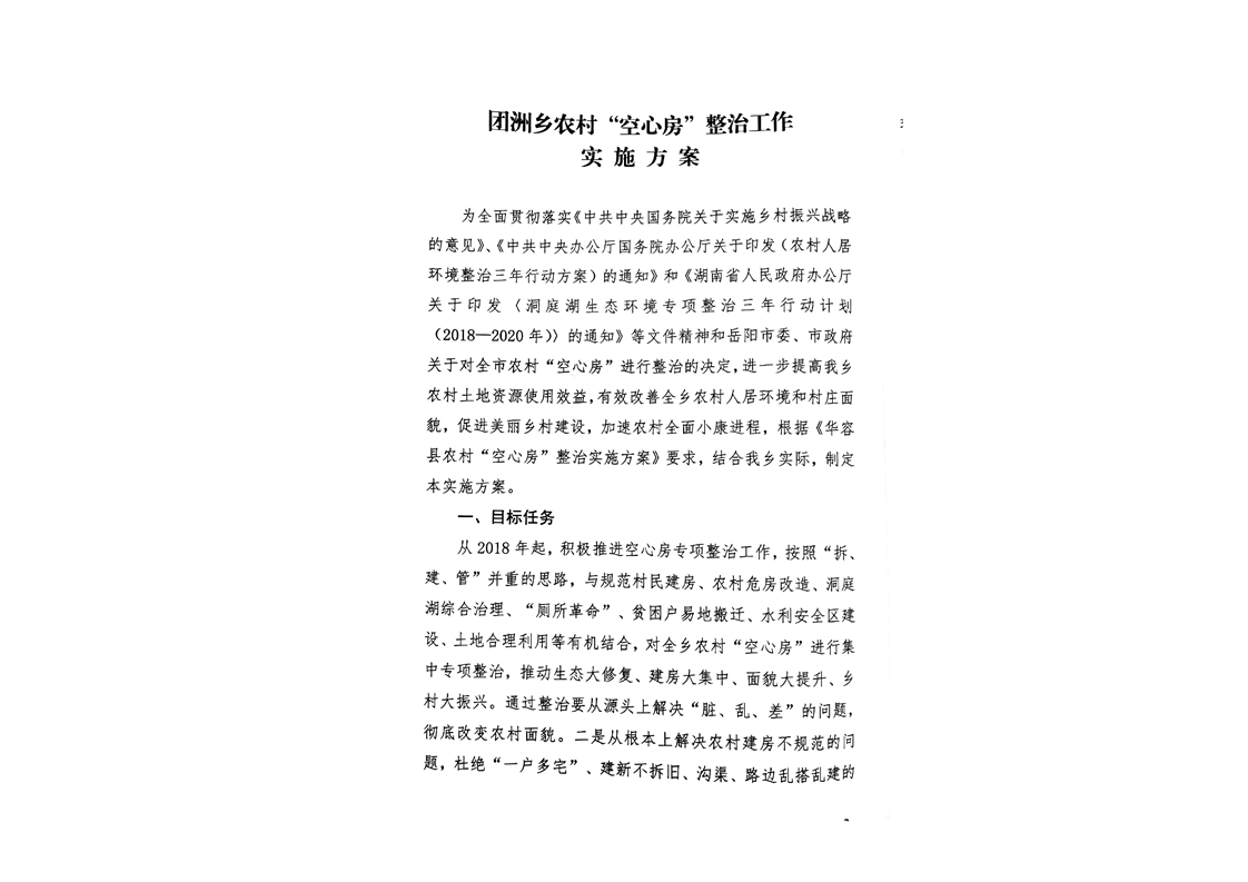 关于印发《团洲乡农村“空心房”整治工作实施方案》的通知