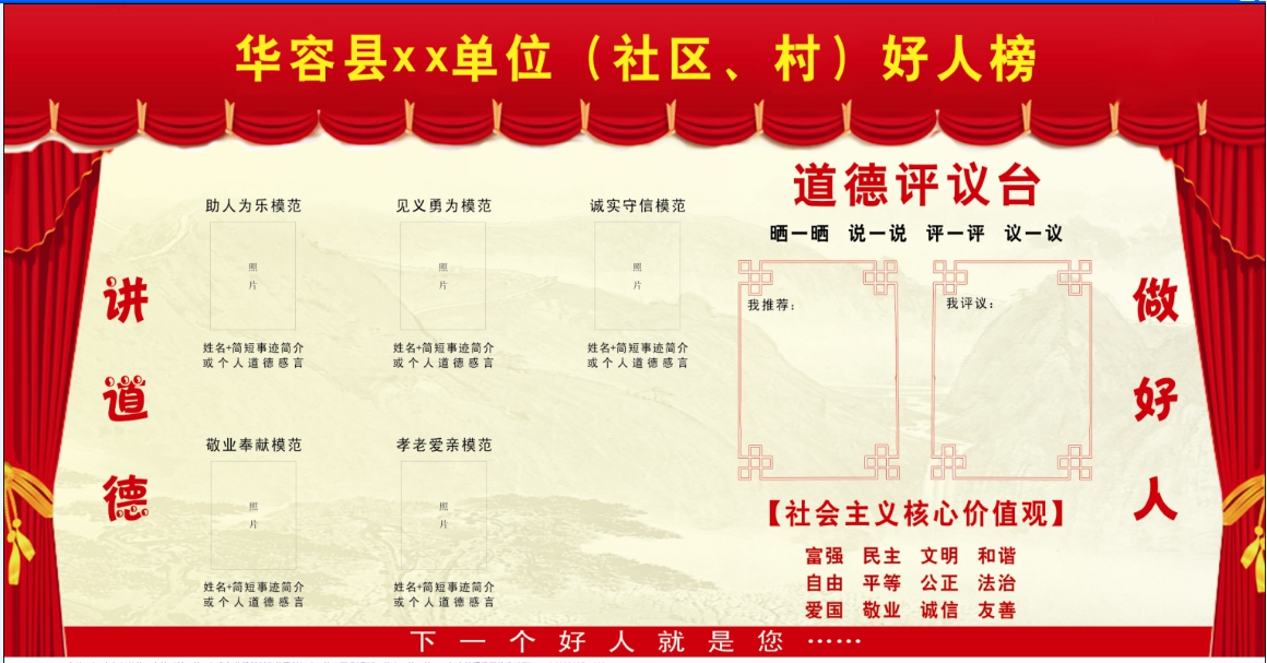 2.加大宣传力度,重在示范引领。要把宣传工作贯穿评选活动始终,做到评选前多渠道宣传造势,评选中对参选对象进行多方位介绍,评选后进行重点表彰及系列报道扩大影响,并将评选结果以“好人榜”的方式张榜公示(模板见附件3)。通过评选,形成鲜明舆论导向,营造全社会广泛关注、党员积极支持、群众踊跃参与的浓厚氛围。