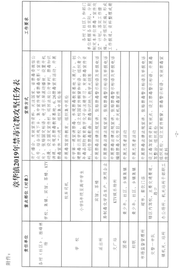 附件:章华镇2019年禁毒宣教攻坚任务表