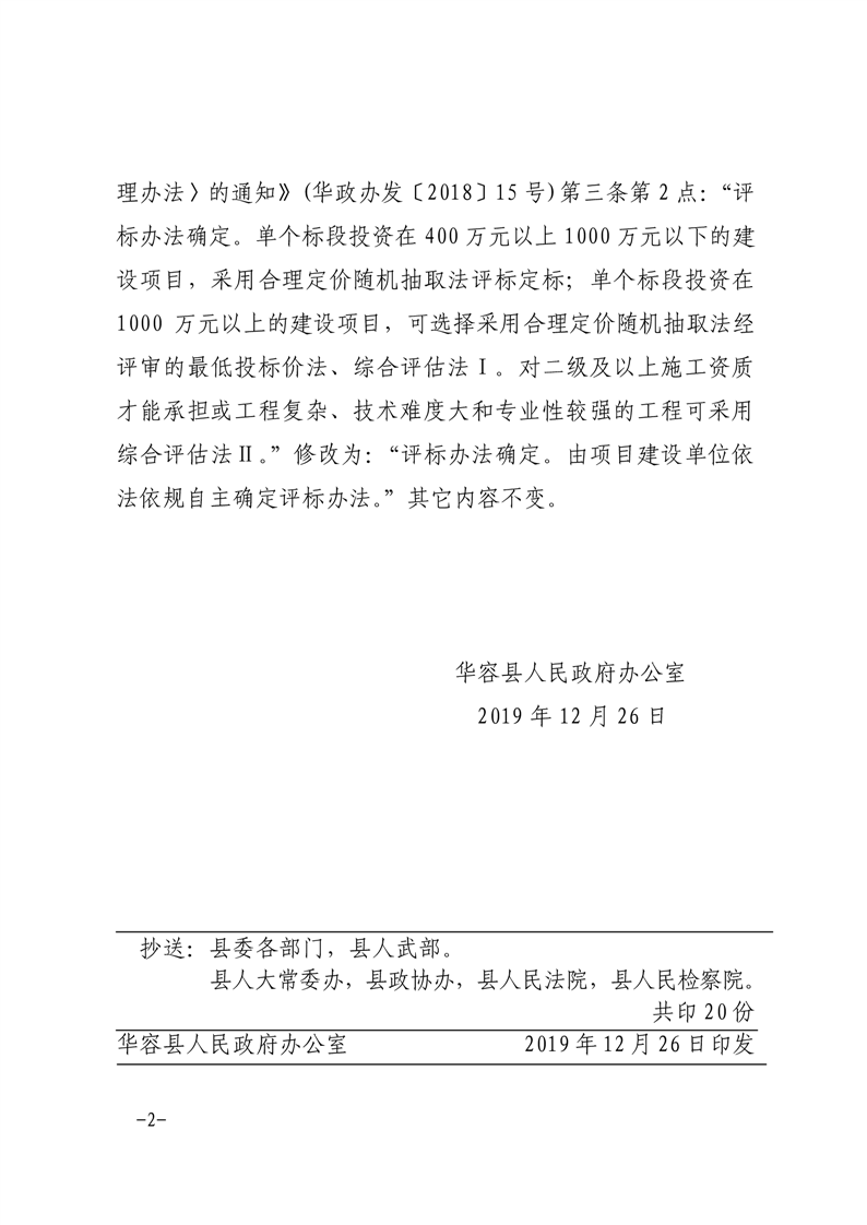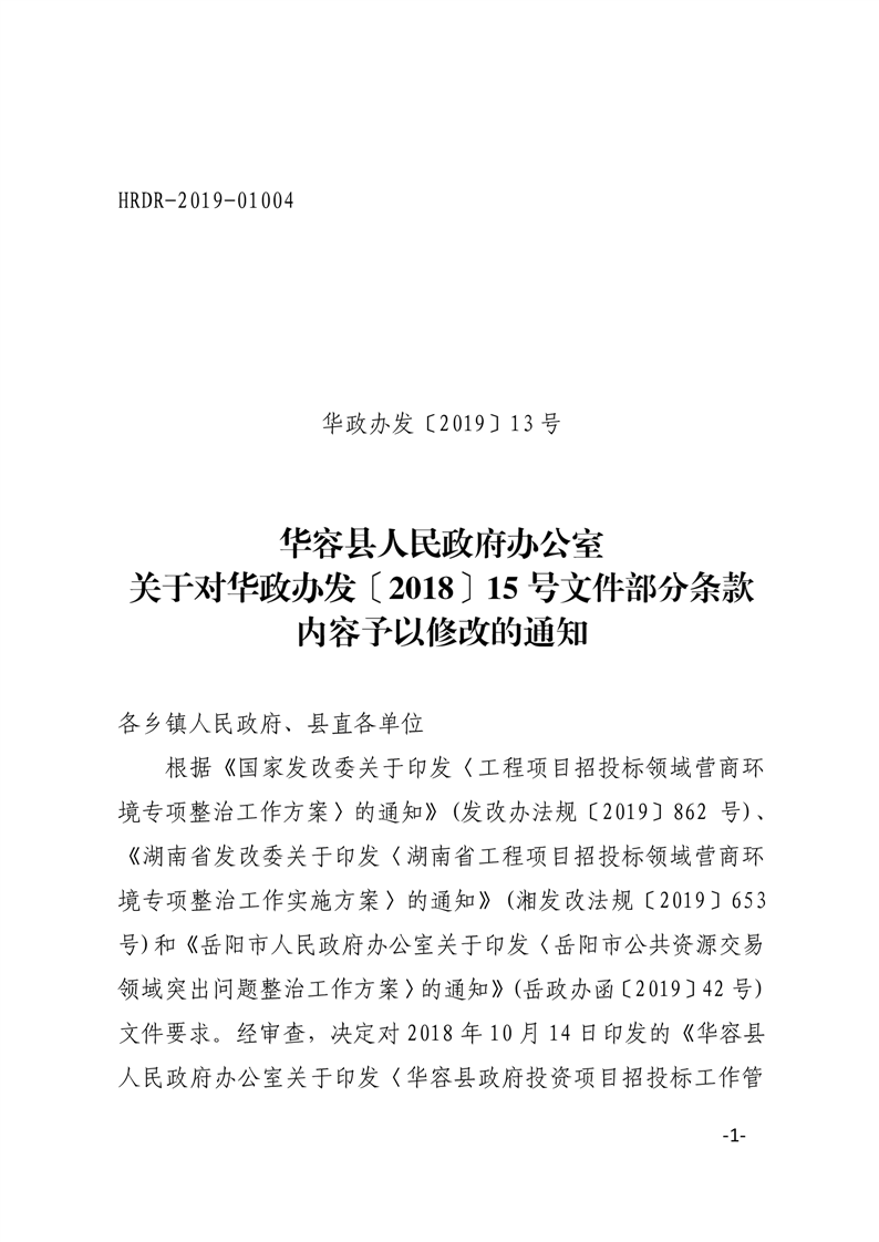 华容县人民政府办公室 关于对华政办发〔2018〕15号文件部分条款 内容予以修改的通知