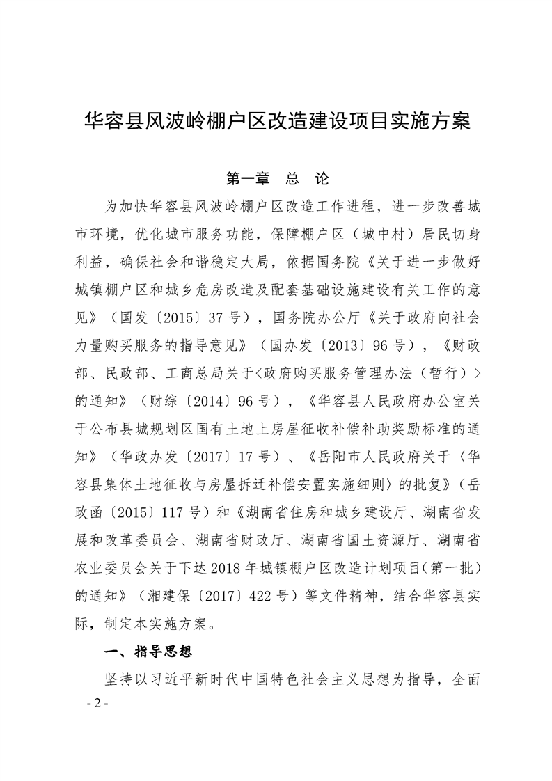 华容县人民政府办公室关于调整《华容县风波岭棚户区改造建设项目 实施方案》部分内容的通知