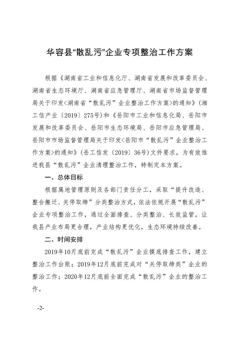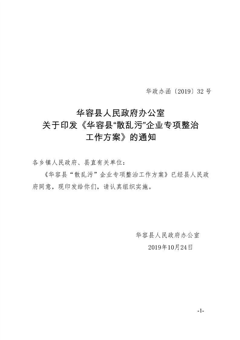 华容县人民政府办公室 关于印发《华容县“散乱污”企业专项整治 工作方案》的通知