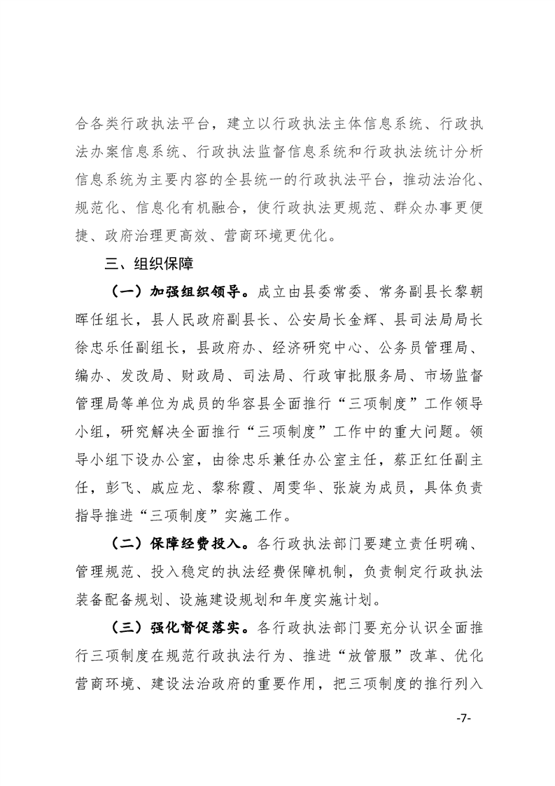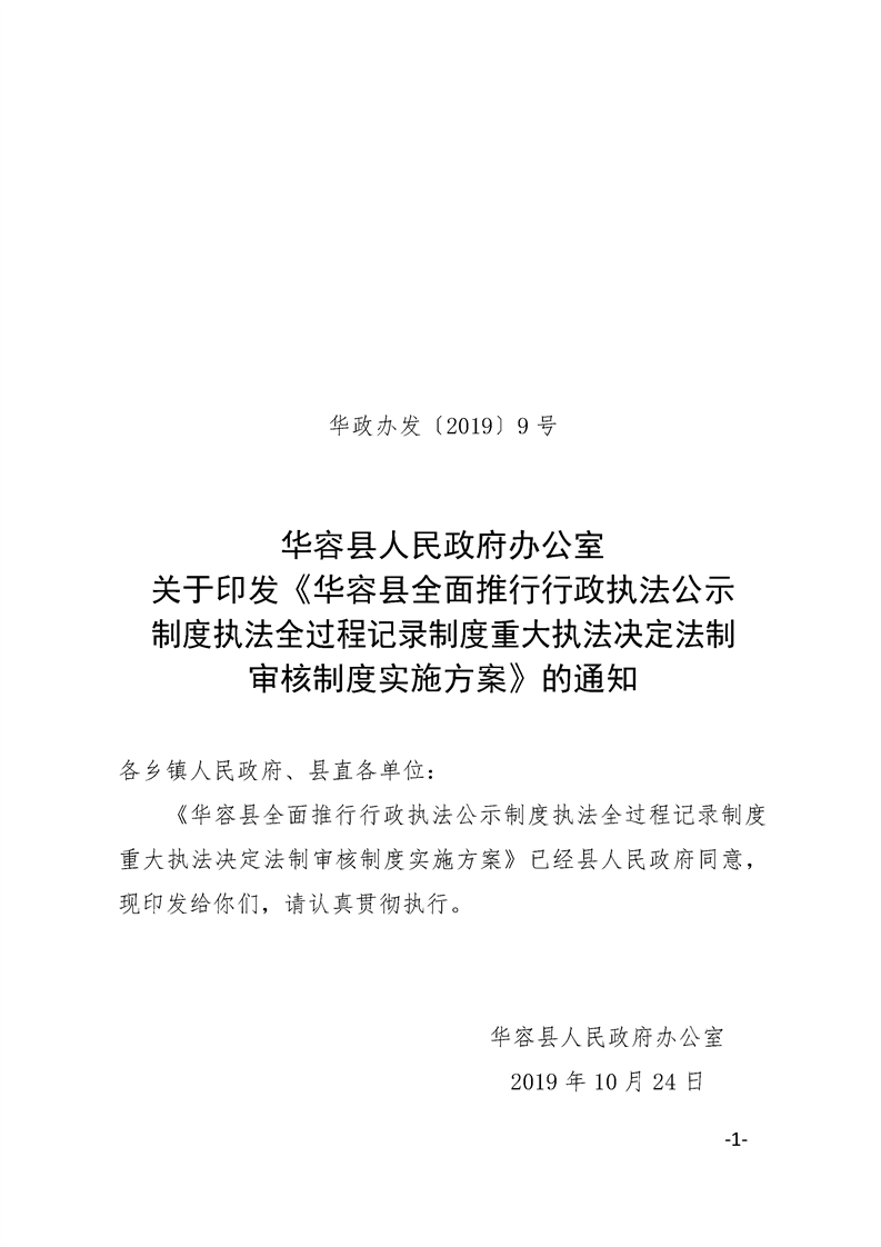 华容县人民政府办公室关于印发《华容县全面推行行政执法公示制度执法全过程记录制度重大执法决定法制 审核制度实施方案》的通知