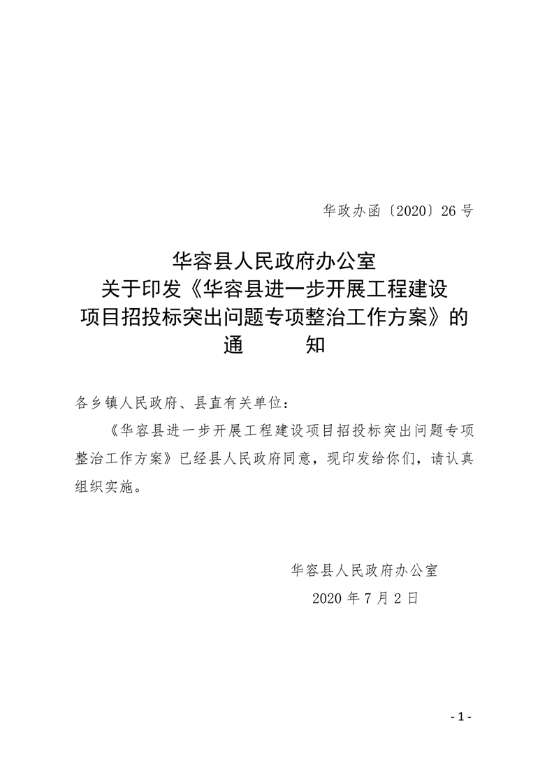 华容县人民政府办公室关于印发《华容县进一步开展工程建设项目招投标突出问题专项整治工作方案》的通知