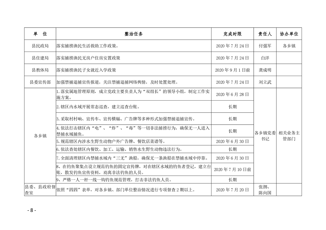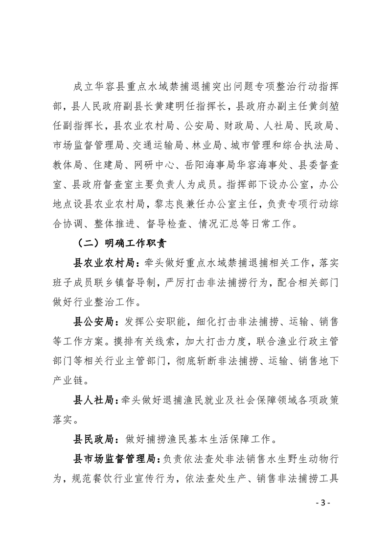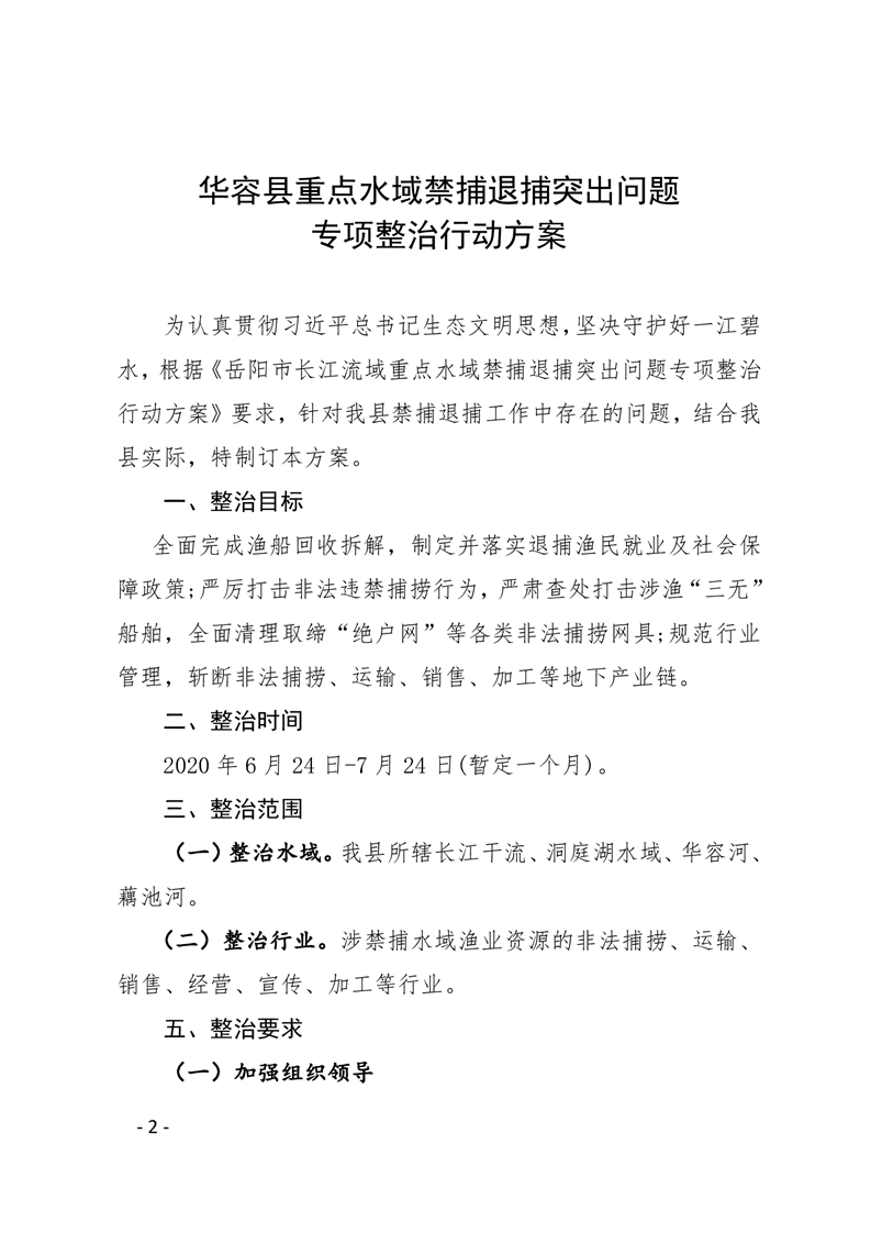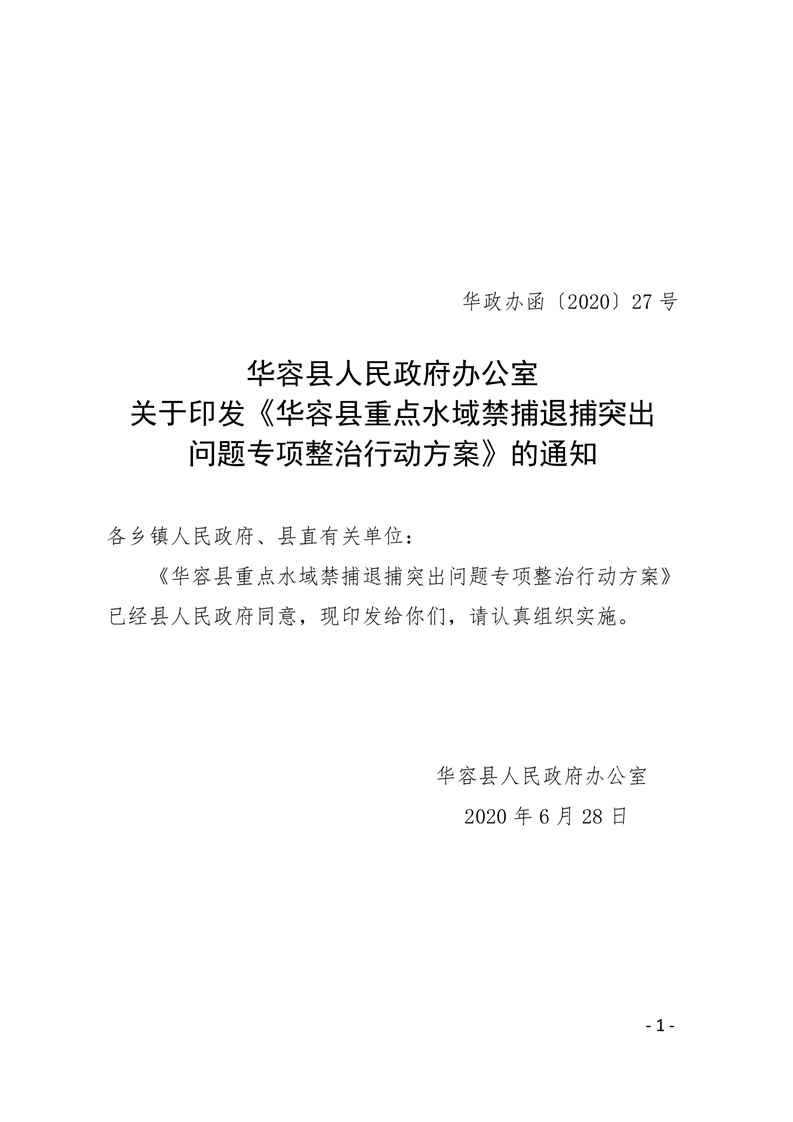 华容县人民政府办公室关于印发《华容县重点水域禁捕退捕突出问题专项整治行动方案》的通知
