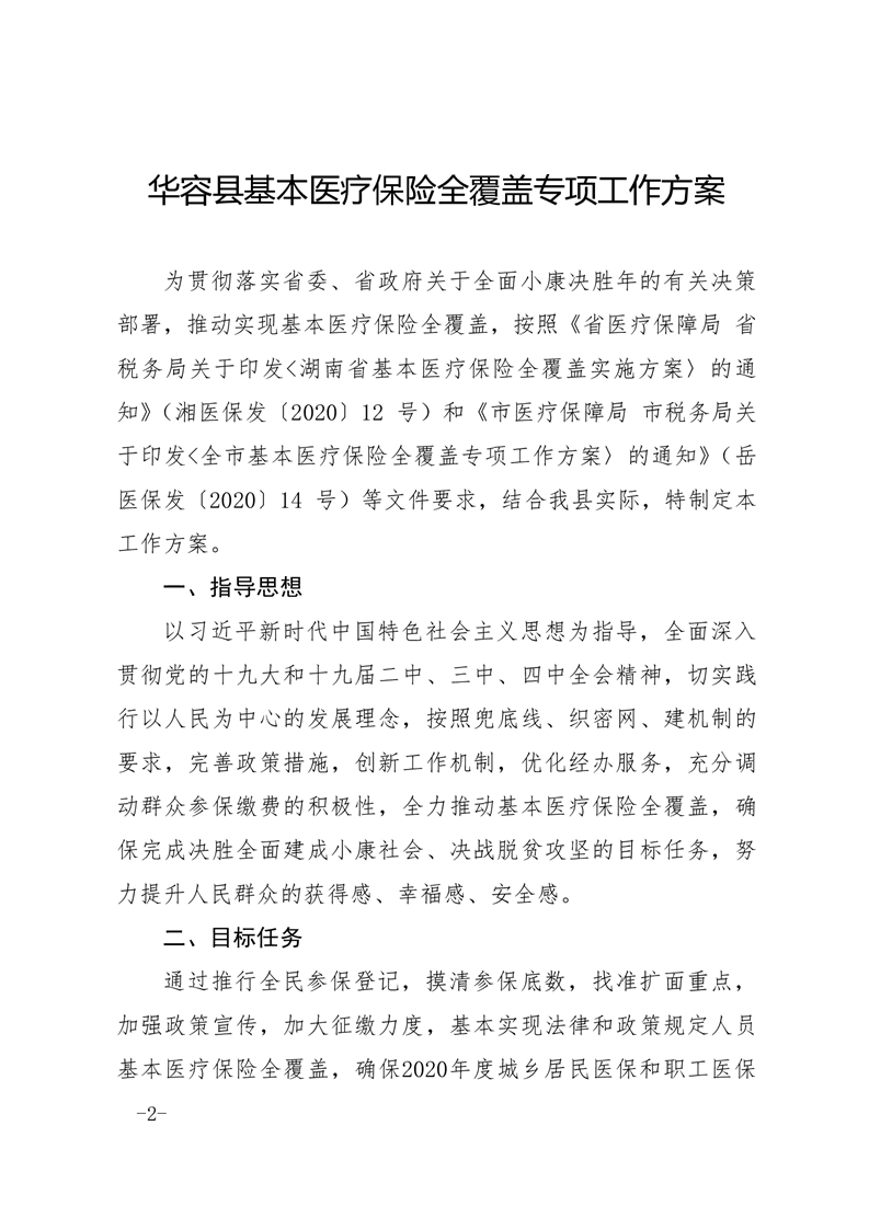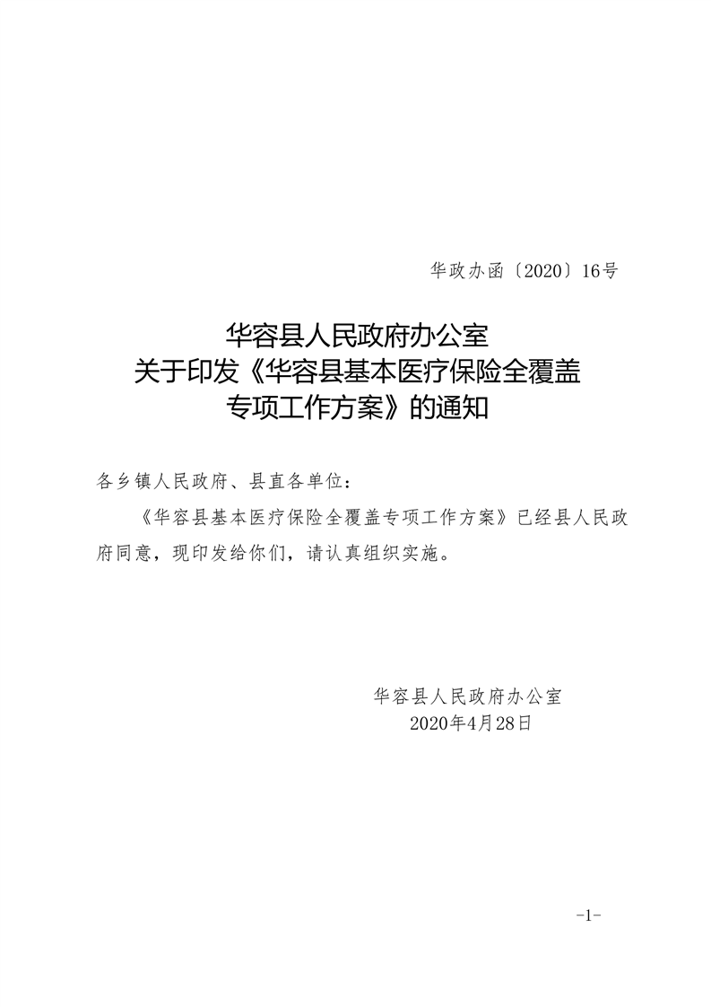 华容县人民政府办公室关于印发《华容县基本医疗保险全覆盖专项工作方案》的通知