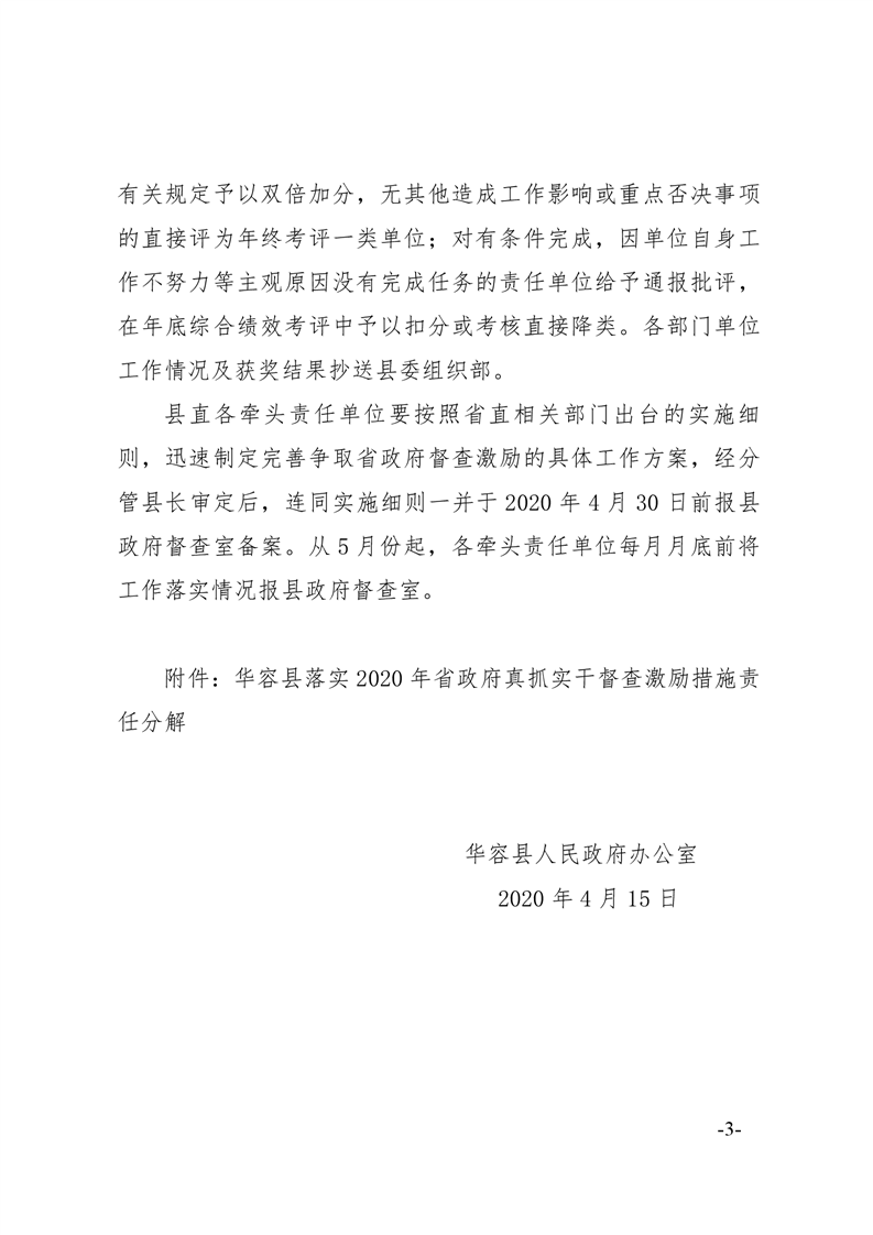 华容县人民政府办公室关于认真做好真抓实干督查激励措施组织落实工作的通知