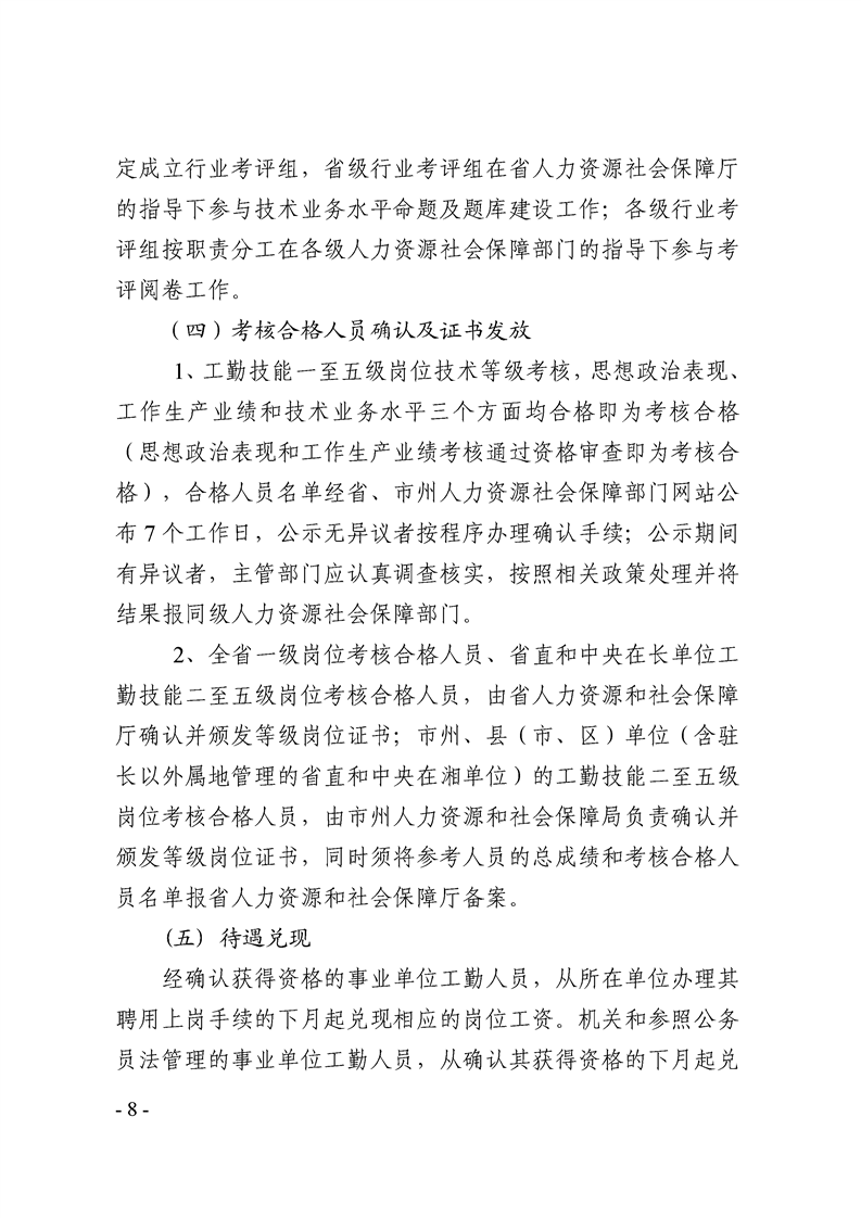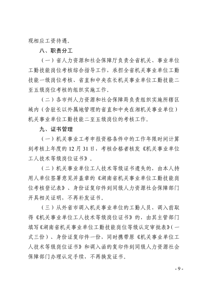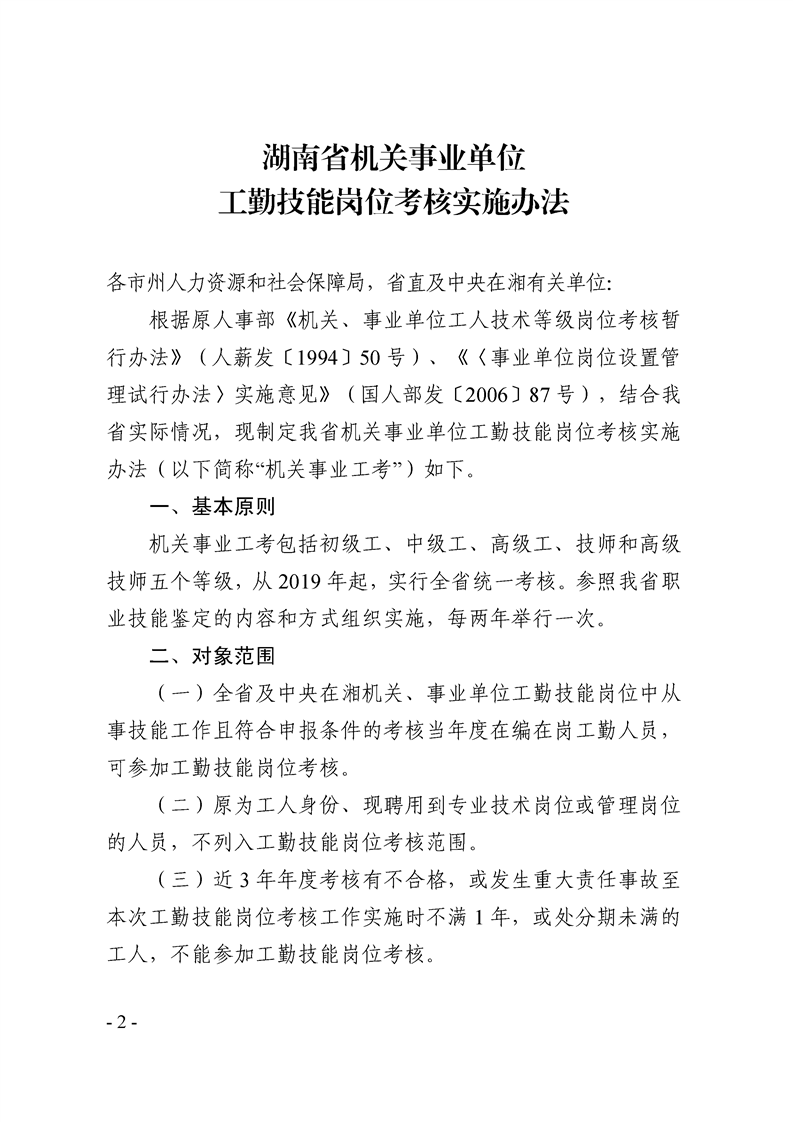 关于印发《湖南省机关事业单位工勤技能岗位考核实施办法》的通知